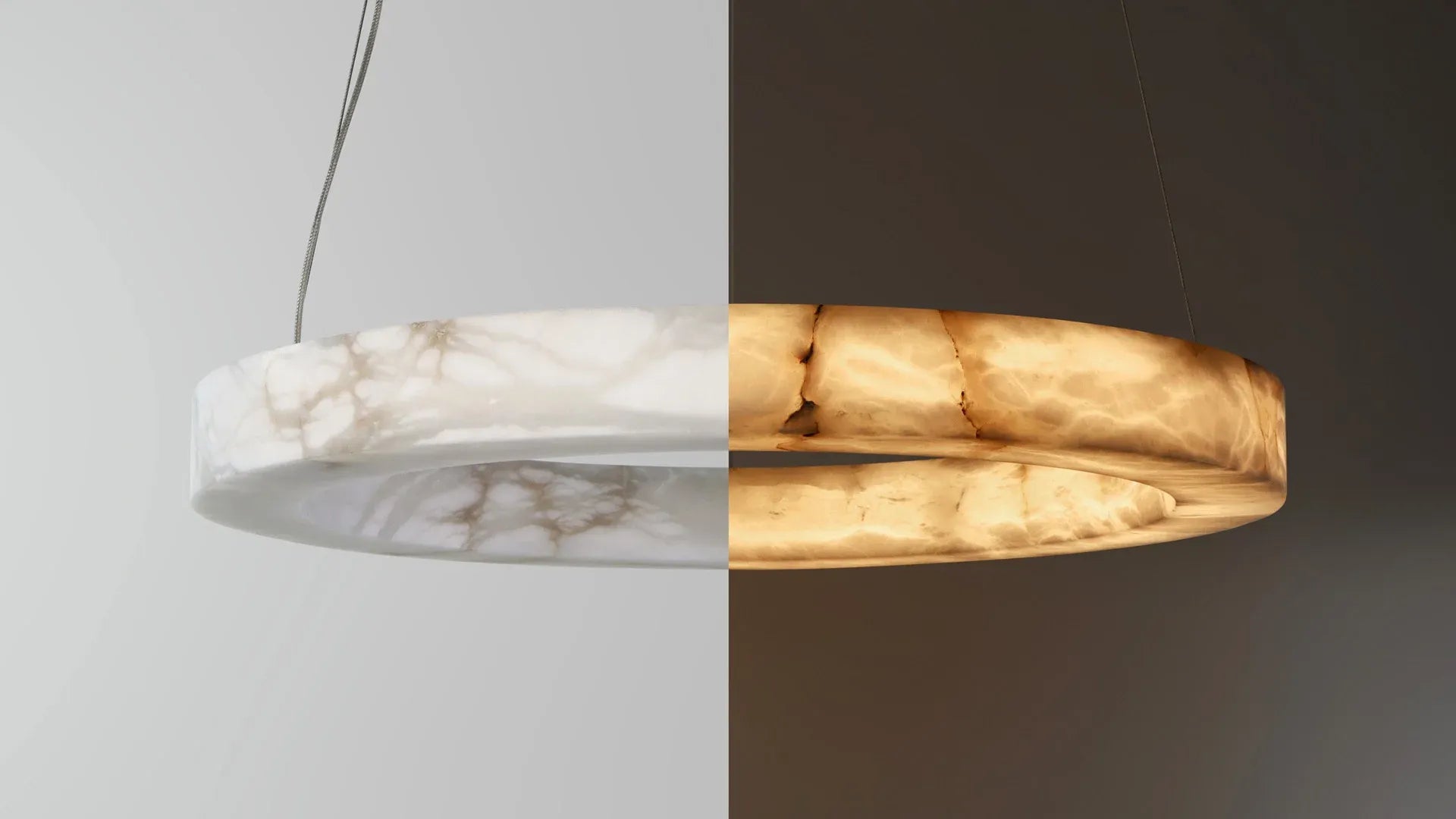 'Moon' Alabaster and Brass Pendant Lamp by Denis De La Mesiere