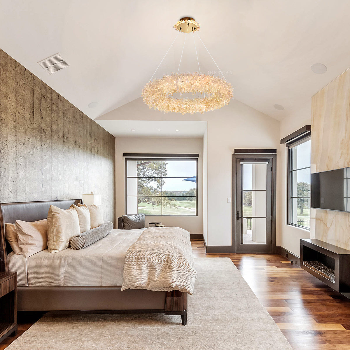 24-47 Inch Round Clear Geode Quartz Crystal Ring Pendant Light Modern Chandelier for Living Room