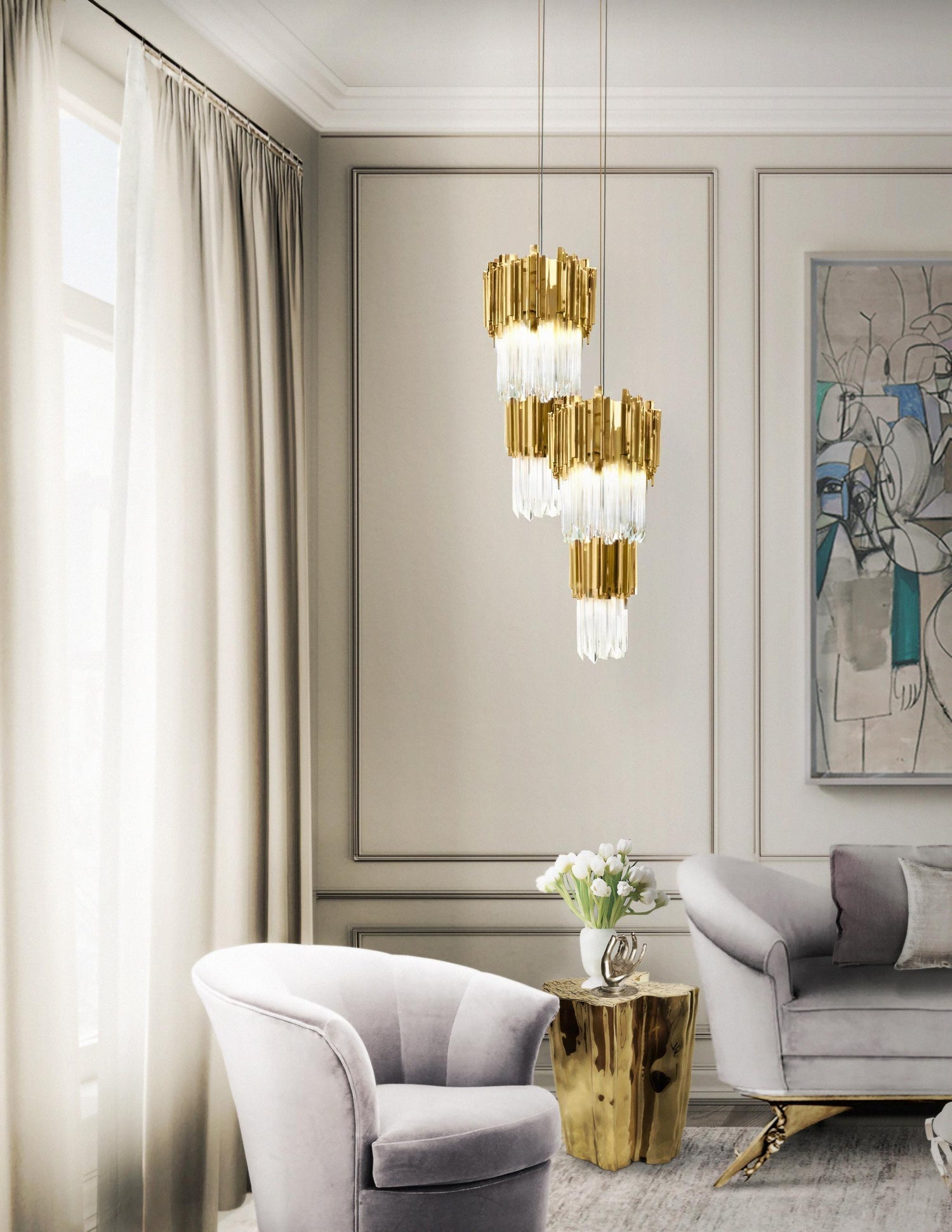 Like a precious treasure, this noble and elegant pendant is an exceptional decorative element of the Empire`s family, with a discrete side. Inspired by the Empire State Building created with brass and crystal glass, finished with gold plated, ideal to use with more than one piece.