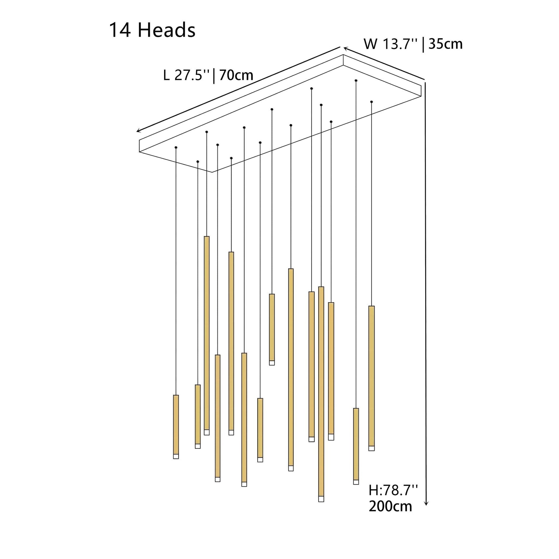 - 14 Head: 31.5" / 80cm Tube*4, 19.6" / 50cm Tube*5, 11.8" / 30cm Tube*5
