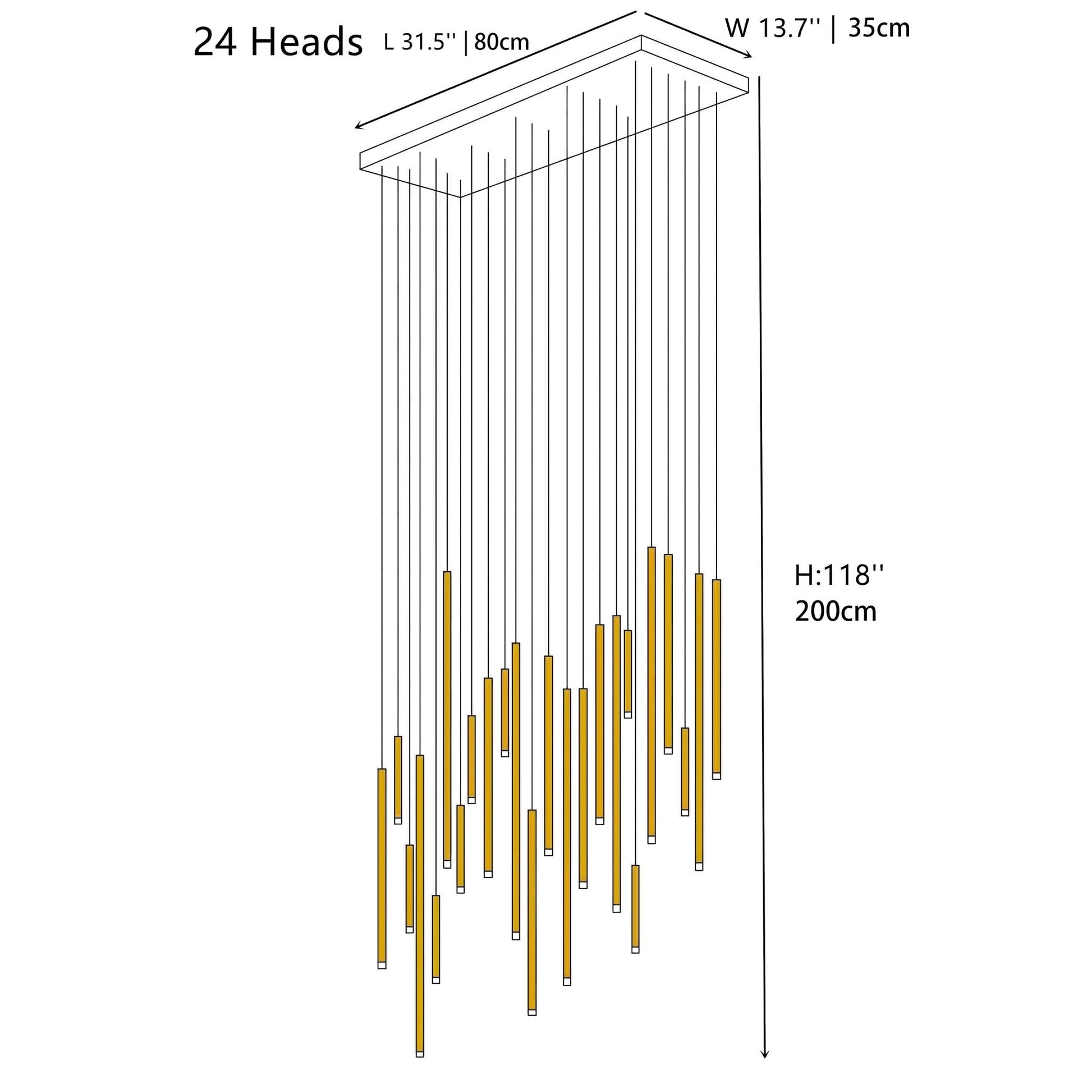 - 36 Head: 31.5" / 80cm Tube*12, 19.6" / 50cm Tube*12, 11.8" / 30cm Tube*12