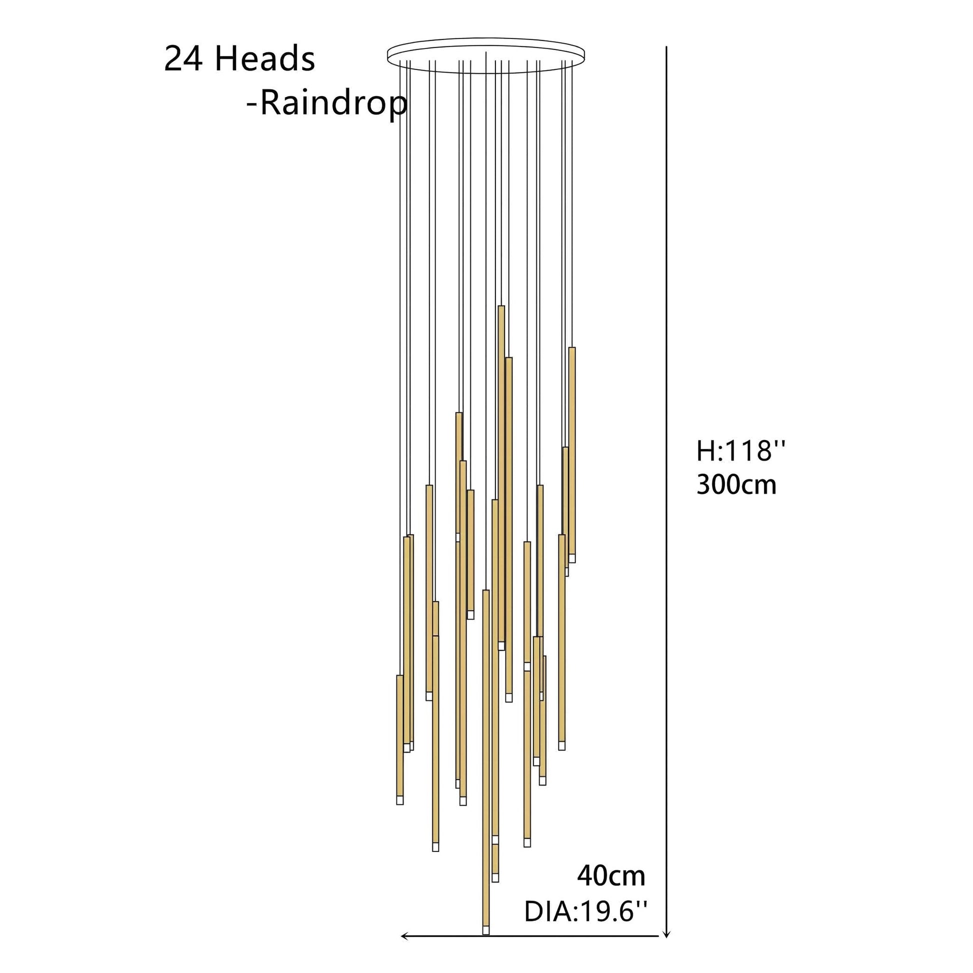 - 24 Head-Raindrop: 19.6'' / 50cm D, 118'' / 3m H