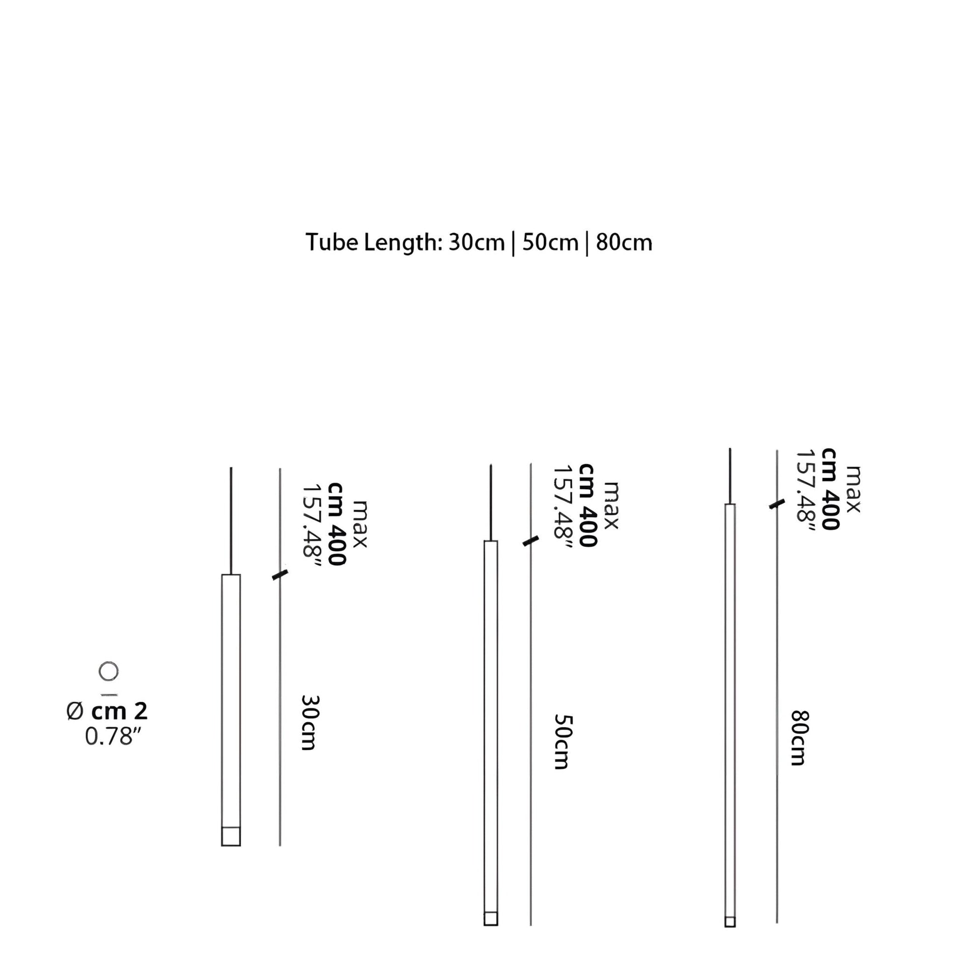 Tube Size: Length 11.8 in/30cm, 19.6 in/50cm, 31.5 in/80cm