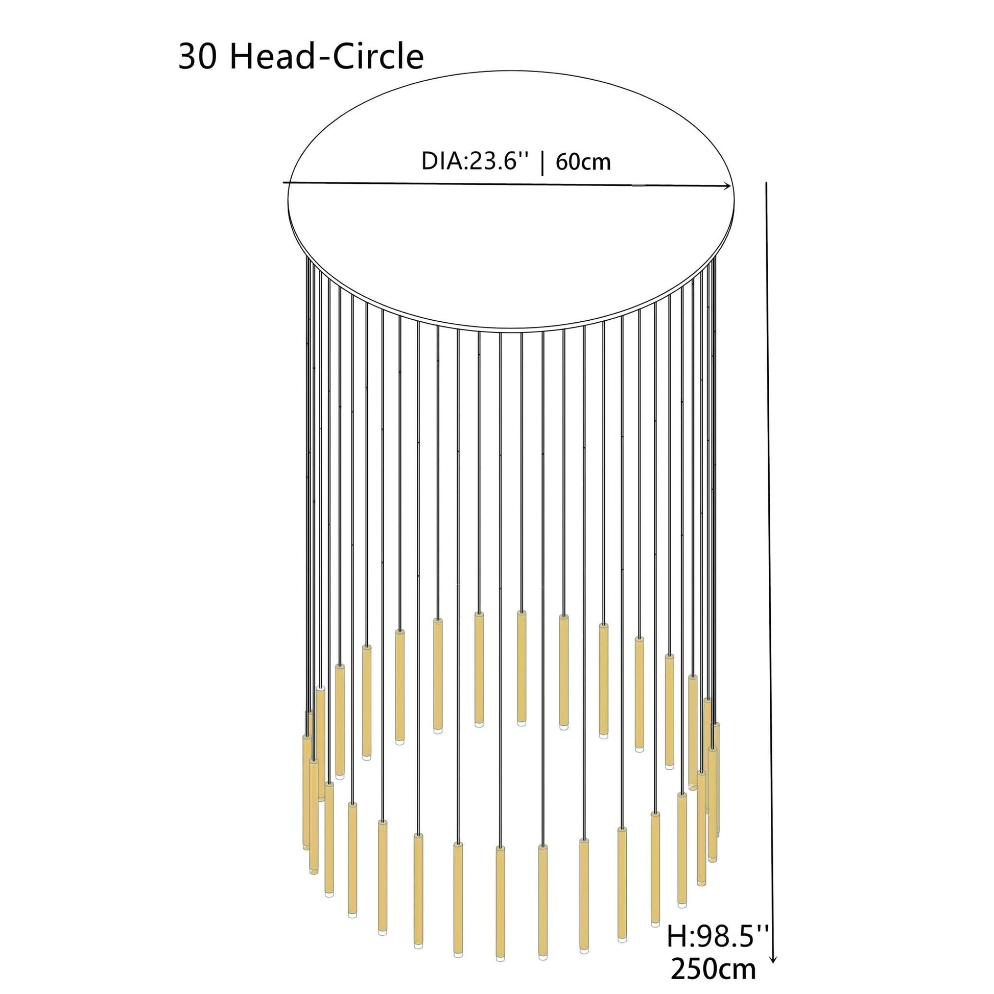 - 30 Head-Circle: 23.6'' / 60cm D, 98.5'' / 2.5m H