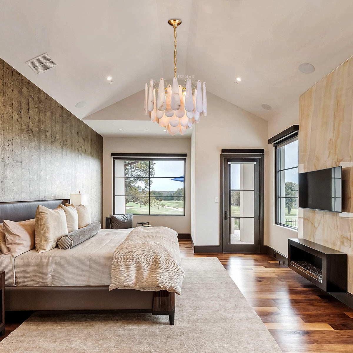 Alabaster Feathery Chandelier 21.7" D 31.5" D