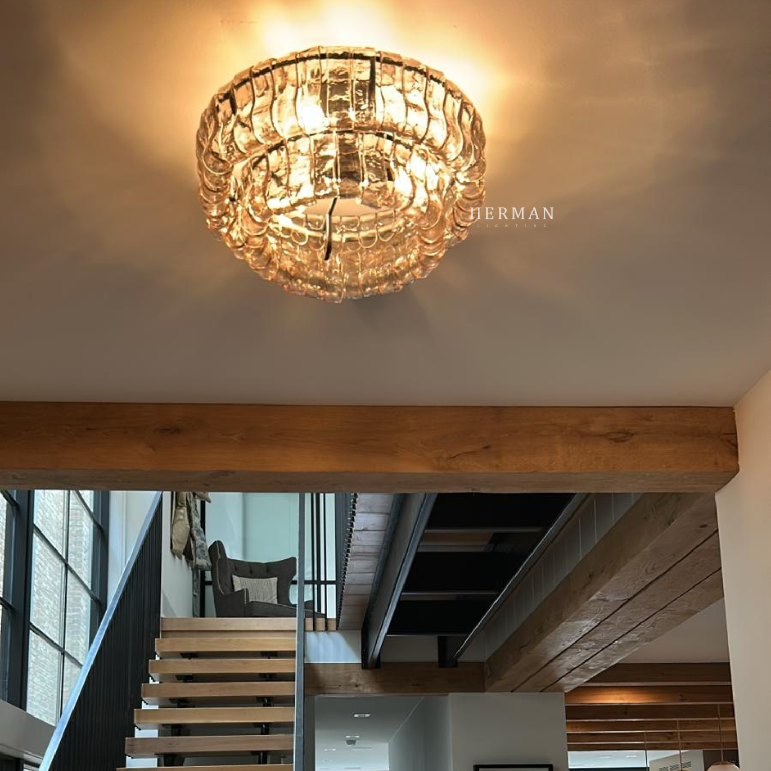 Amor 2-Tier Glass Ghiaccio Round Flushmount 18"