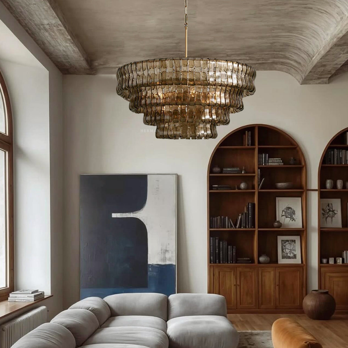 Amor 4-Tier Glass Ghiaccio Round Chandelier 36"