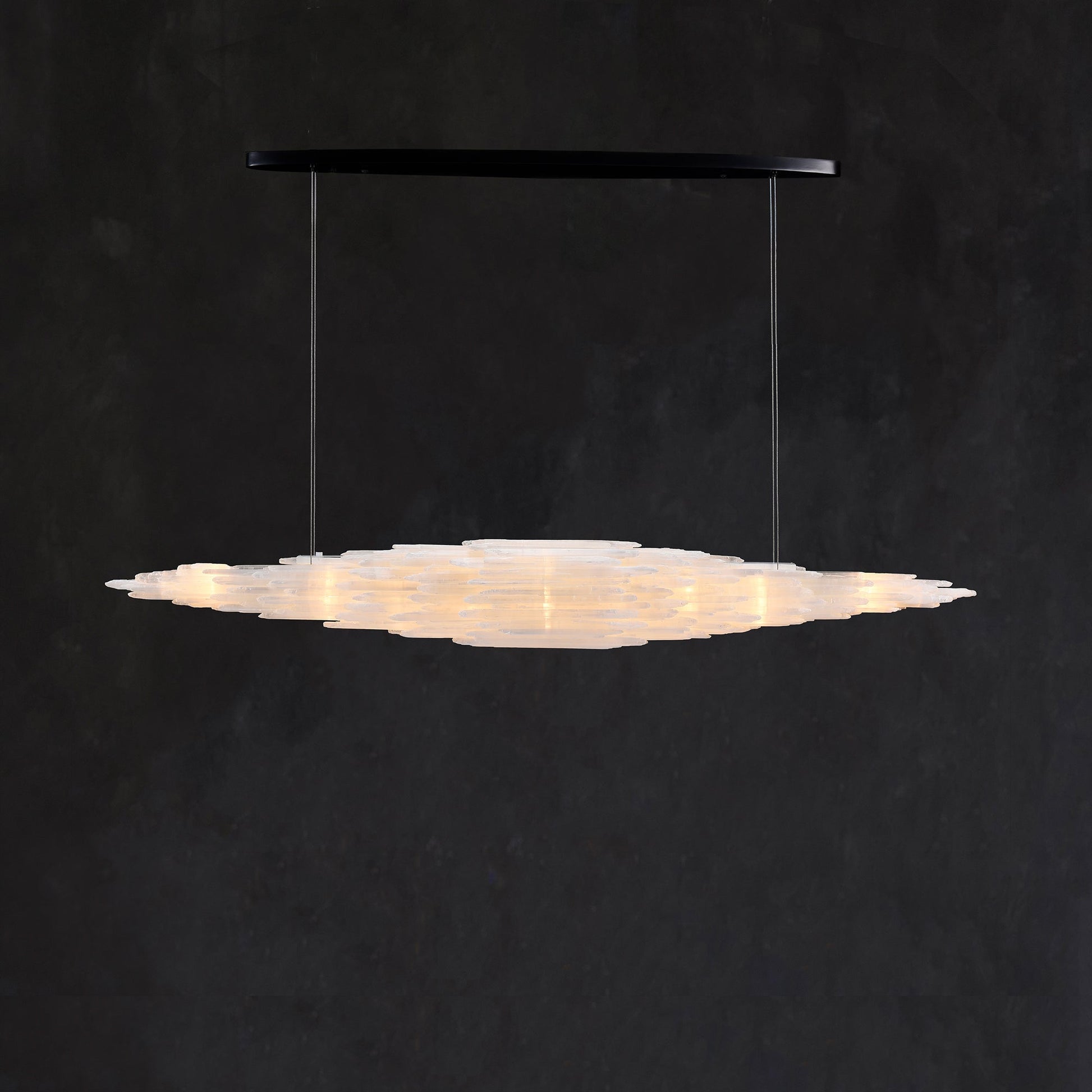 Named after the Greek goddess of the moon, selenite emits a soft, moonlight-like glow. This crystalline form of gypsum is valued for its spiritual and protective properties and is believed to unlock divine wisdom. Our Art Selenite Lighting has crystals carefully set into the frame to resemble glistening stalactites.
