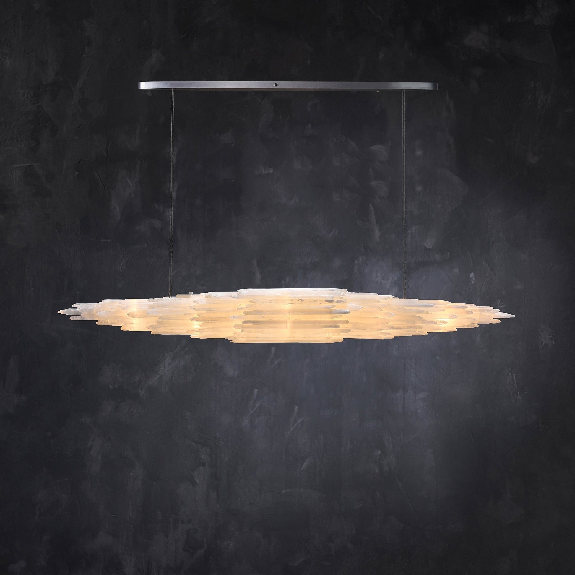 Named after the Greek goddess of the moon, selenite emits a soft, moonlight-like glow. This crystalline form of gypsum is valued for its spiritual and protective properties and is believed to unlock divine wisdom. Our Art Selenite Lighting has crystals carefully set into the frame to resemble glistening stalactites.