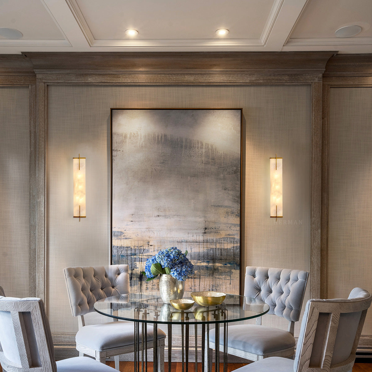 Presenting our Alabaster Wall Sconce, a harmonious fusion of subtlety and commanding presence. Featuring exquisite alabaster and a sleek black metal backplate, this wall sconce exudes timeless elegance. It will illuminate your home with a soft yet strong glow, perfect for accentuating bedroom wall lights or serving as modern wall sconces. The Beckett Alabaster Wall Sconce brings understated beauty and captivating allure, making it an ideal choice for accent lighting in dining rooms or enhancing the ambiance of any room. Explore our collection for lighting that effortlessly merges grace and strength, adding a captivating allure to your home.