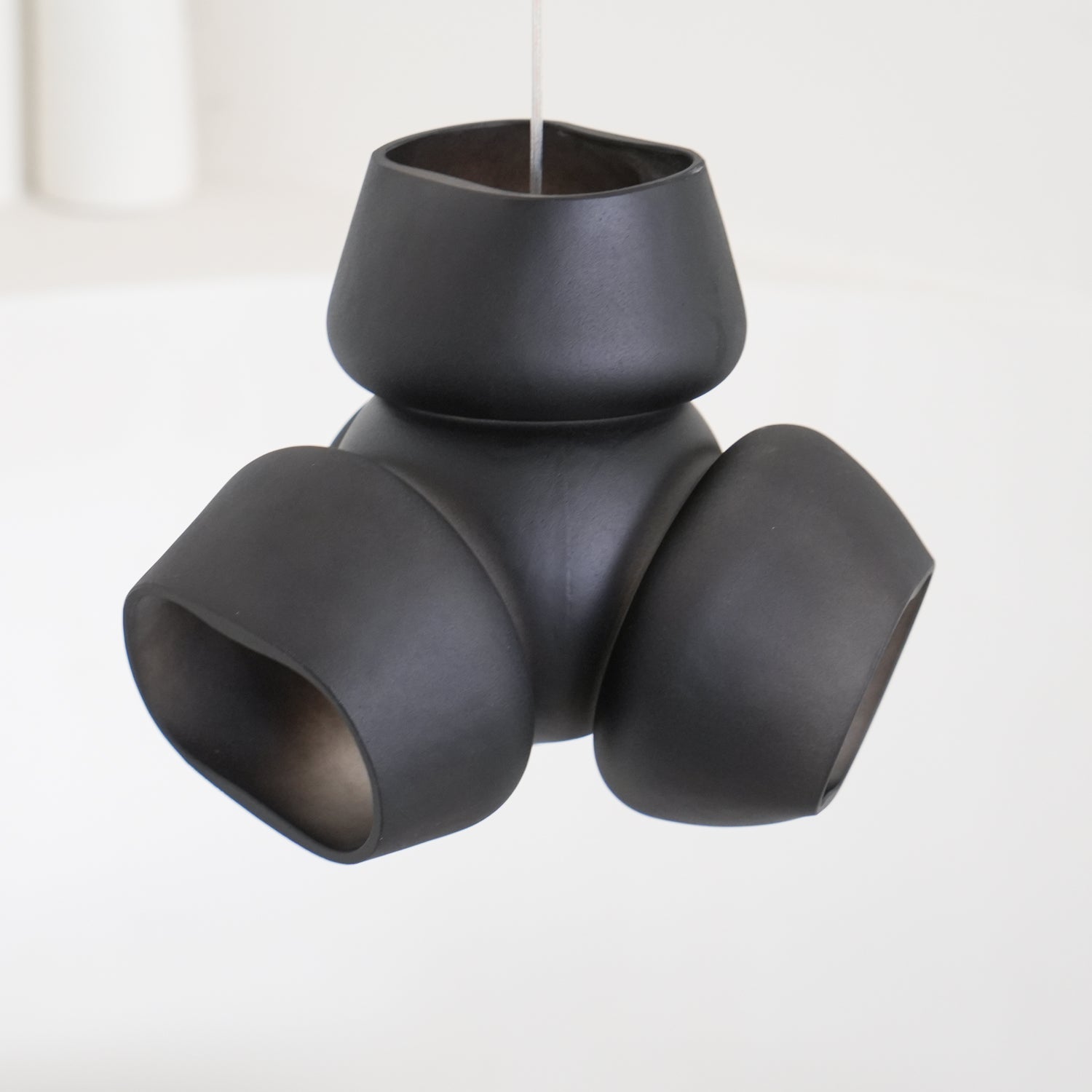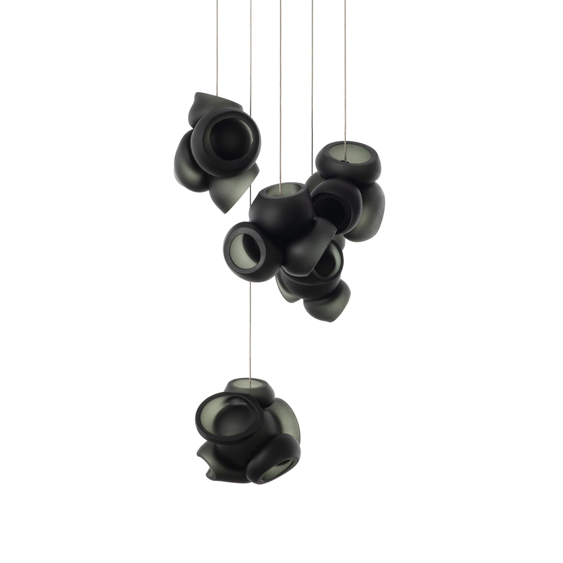 The modular Bubbles Cluster Pendant Light is formed when multiple glassblowers methodically produce glass bubbles, then instantly push the malleable spheres into an interlocking cluster. The light fixture remains suspended in the air by being connected to the ceiling canopy. This decorative piece brings a modern, handcrafted aesthetic to your living space, livening up your design scheme.