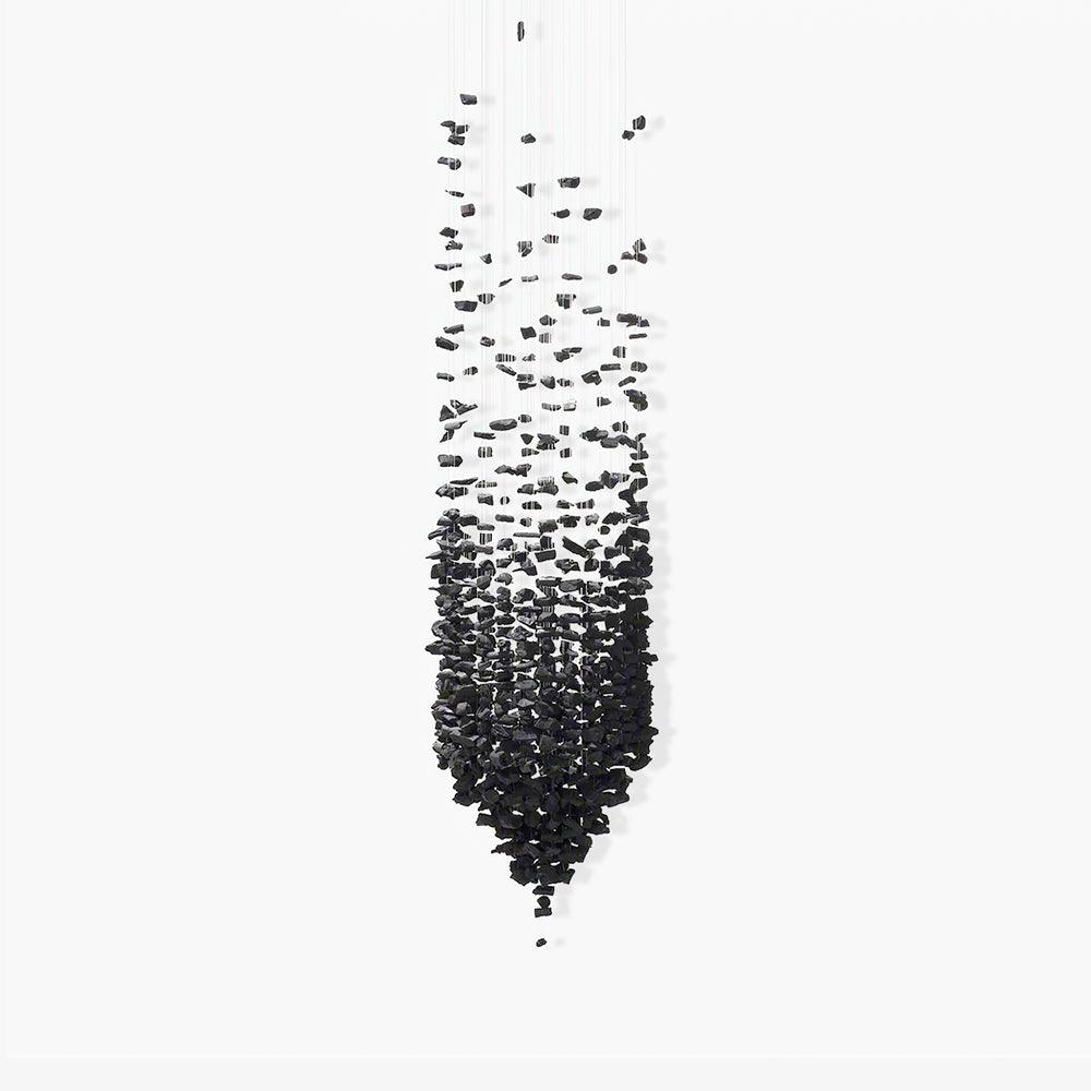 This Charcoal Chandelier G to L is a unique design piece that reflects the idea that everything in the world is connected and interrelated. Crafted from charcoal, each design is handmade and delicately expands to fill a space, creating a sophisticated architectural statement. Its minimalist aesthetic provides a stunning focal point in any room.