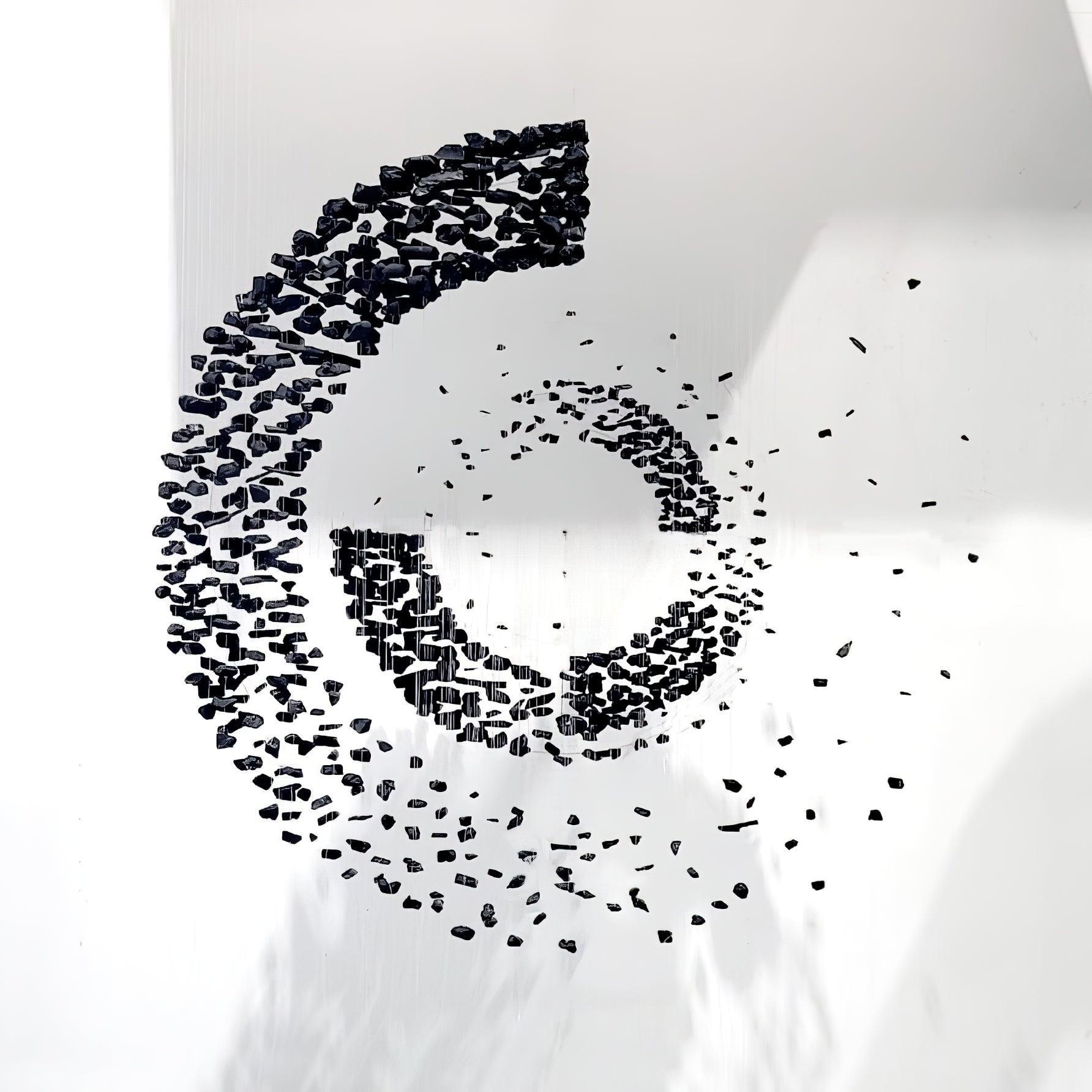 Beginning with one piece of charcoal, a line is formed and an area is filled, expressing the idea that everything in the universe interconnects. The use of charcoal, which simultaneously creates and destroys, implies that all of existence is condensed in a single point. The meaning is plain and unmistakable.