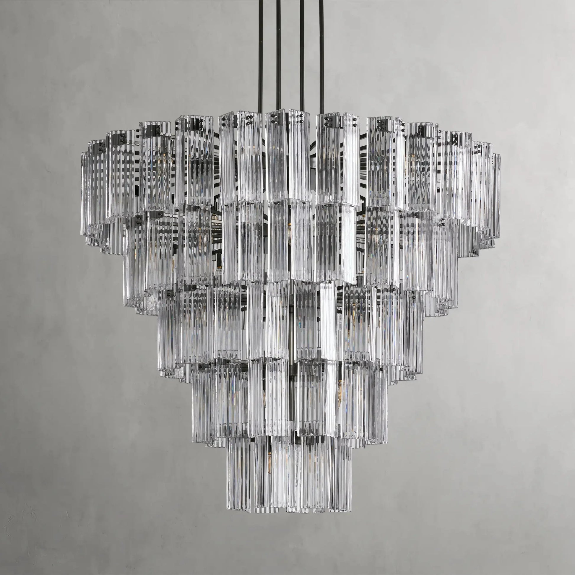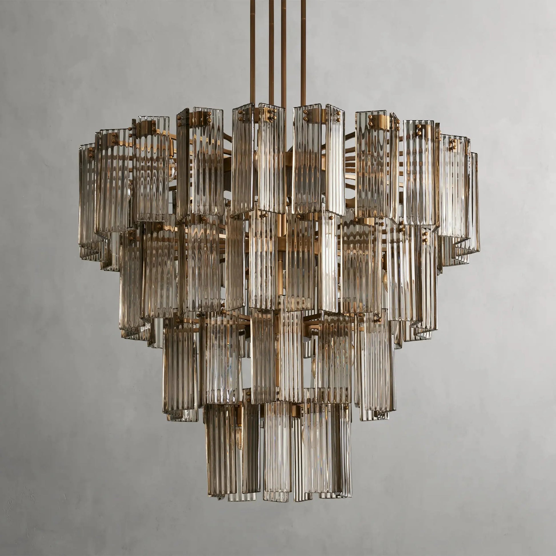 A fresh take on a traditional silhouette, our Delsie Collection radiates old Hollywood glamour. Crafted from reeded glass panels elegantly arranged around a steel frame, Delsie creates dramatic ambiance in any space.