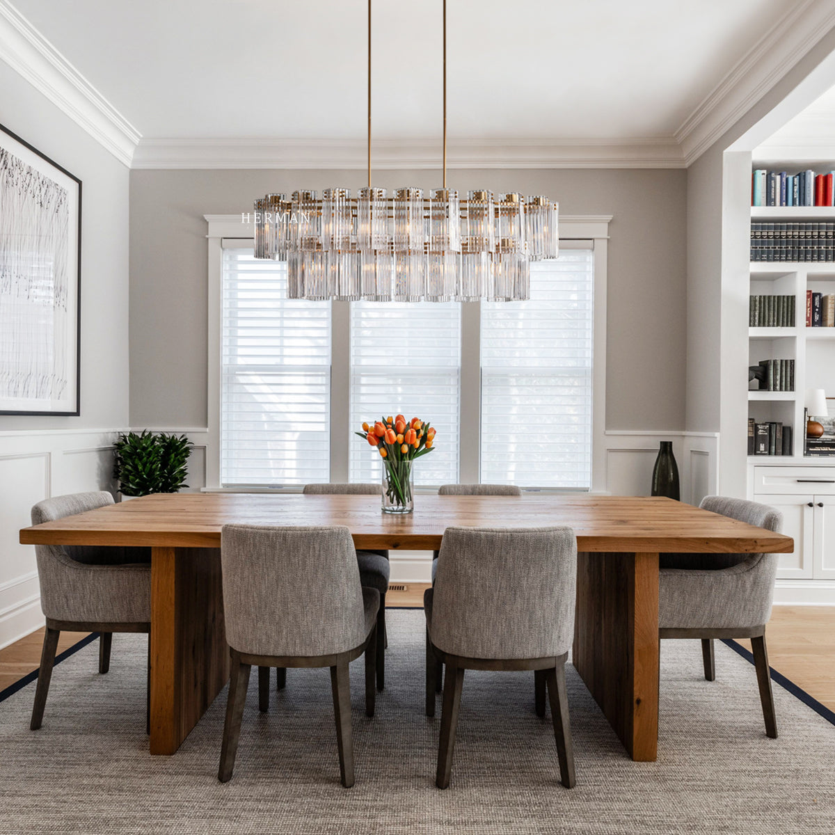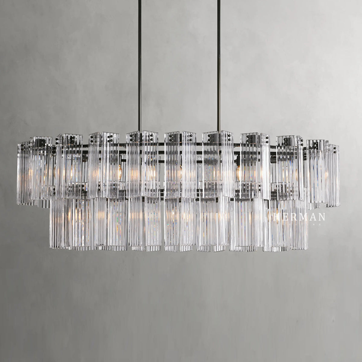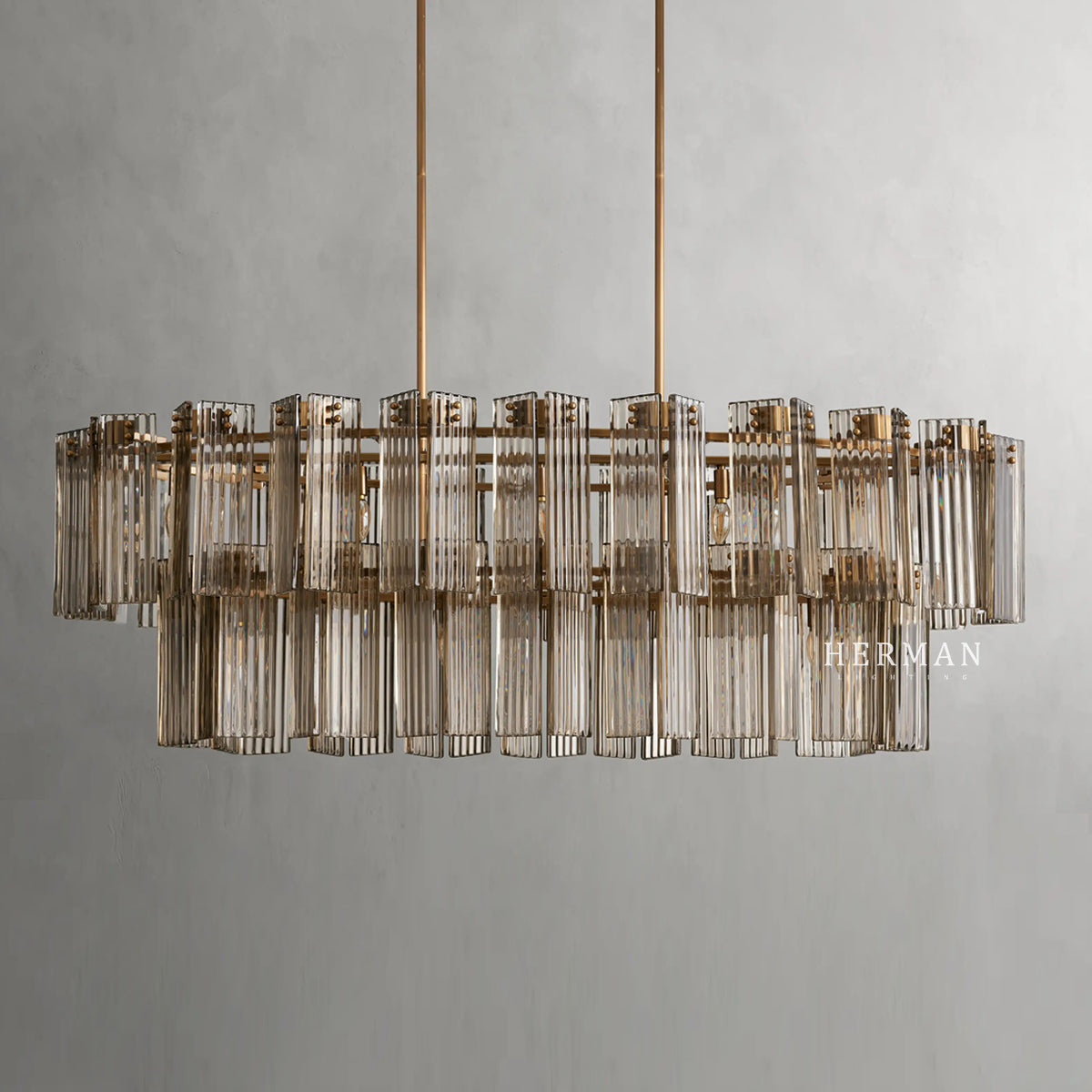 A fresh take on a traditional silhouette, our Delsie Collection radiates old Hollywood glamour. Crafted from reeded glass panels elegantly arranged around a steel frame, Delsie creates dramatic ambiance in any space.