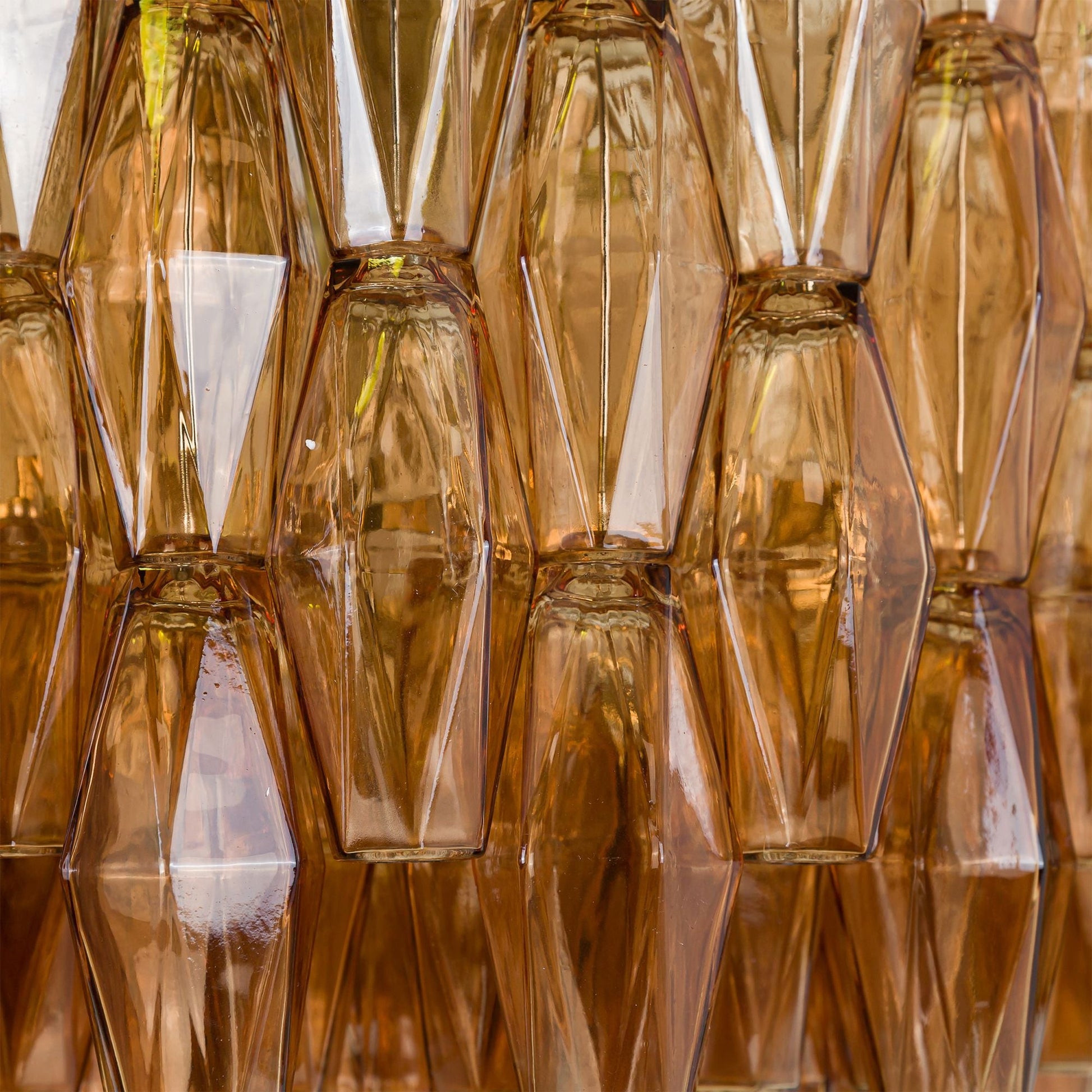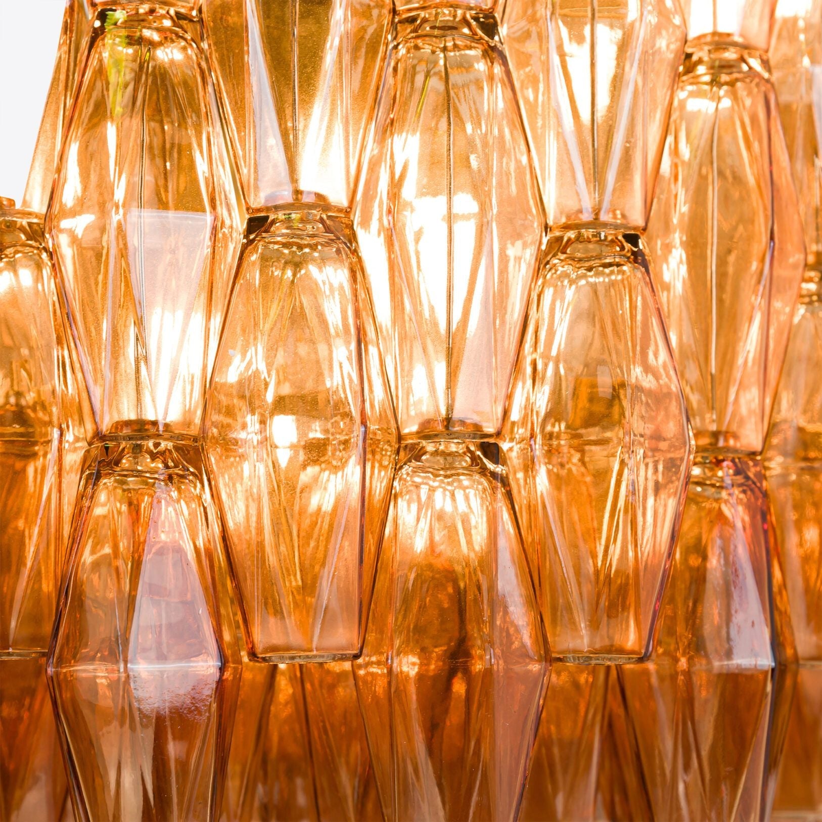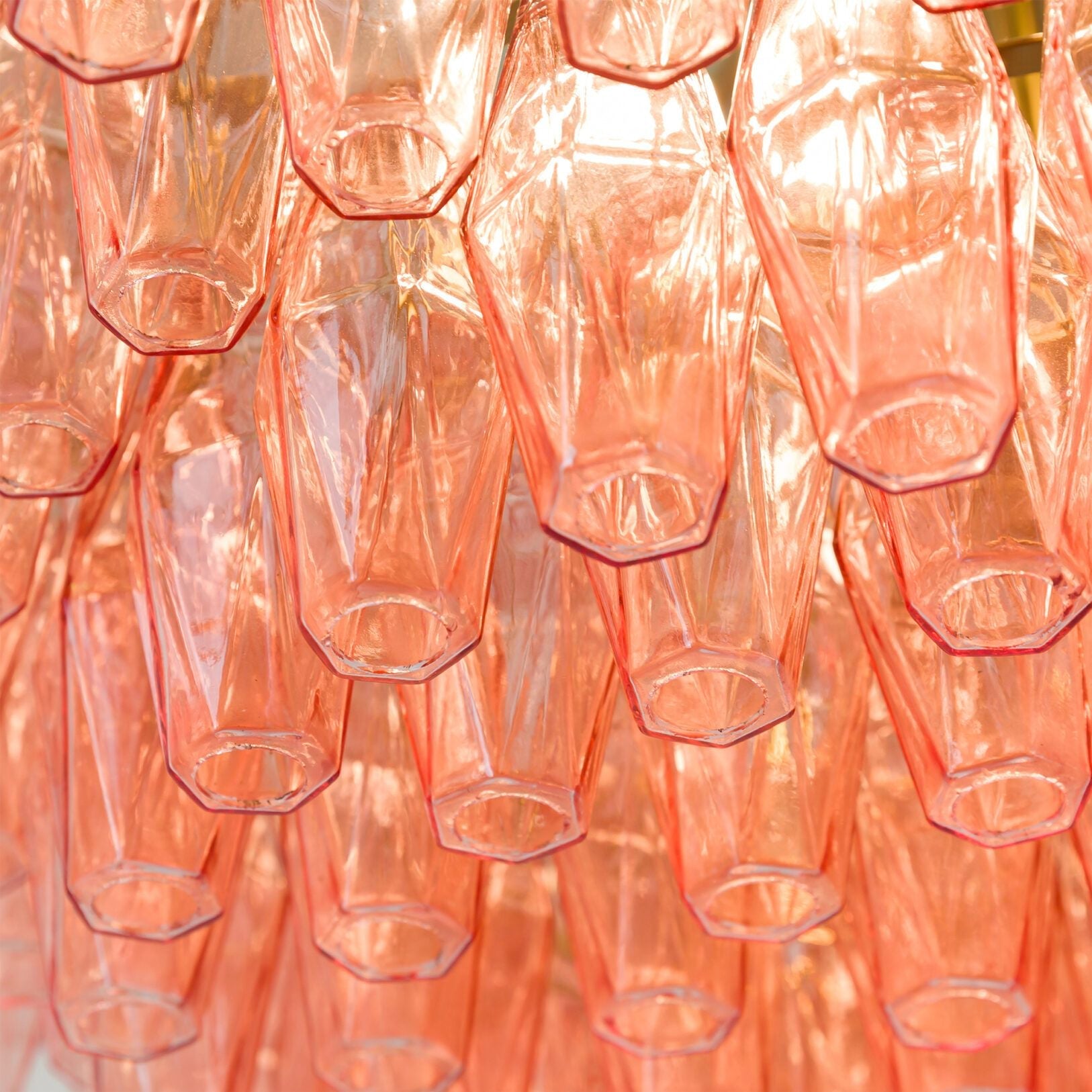 The drum version of our best-selling Sorrento chandelier features beautiful polyhedrons of coloured glass – available in pink or amber.