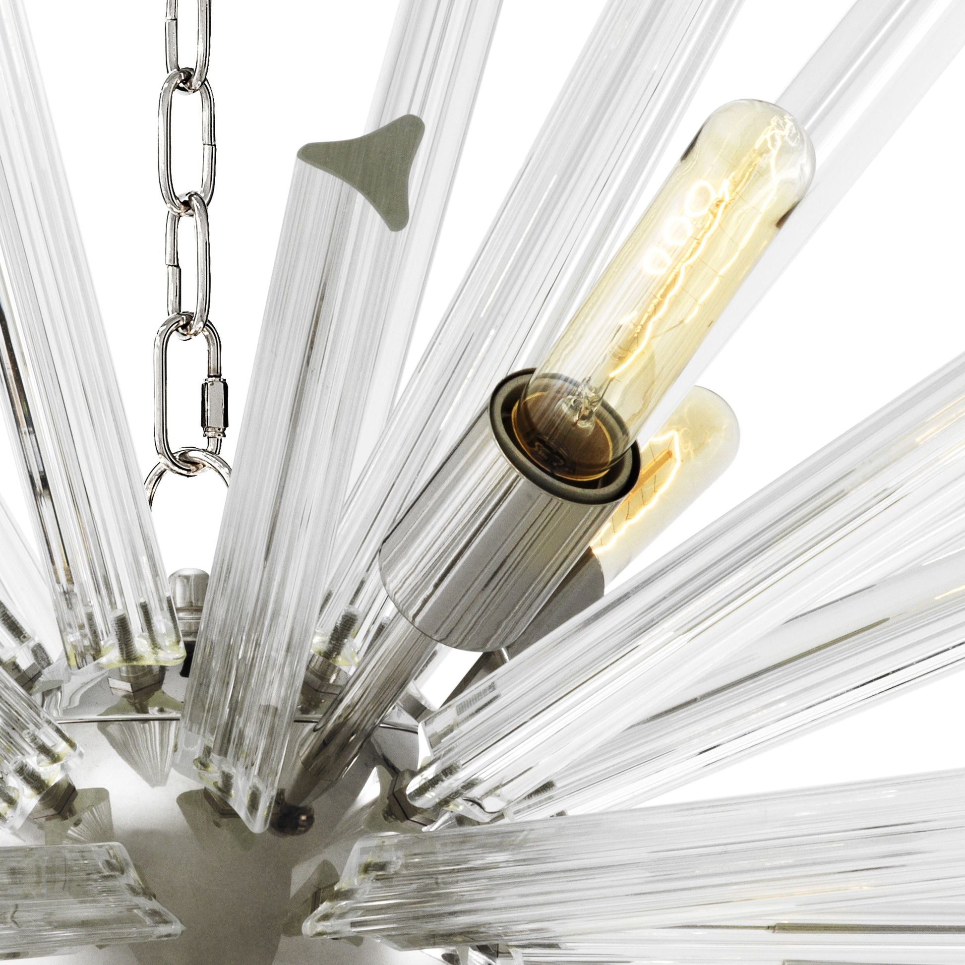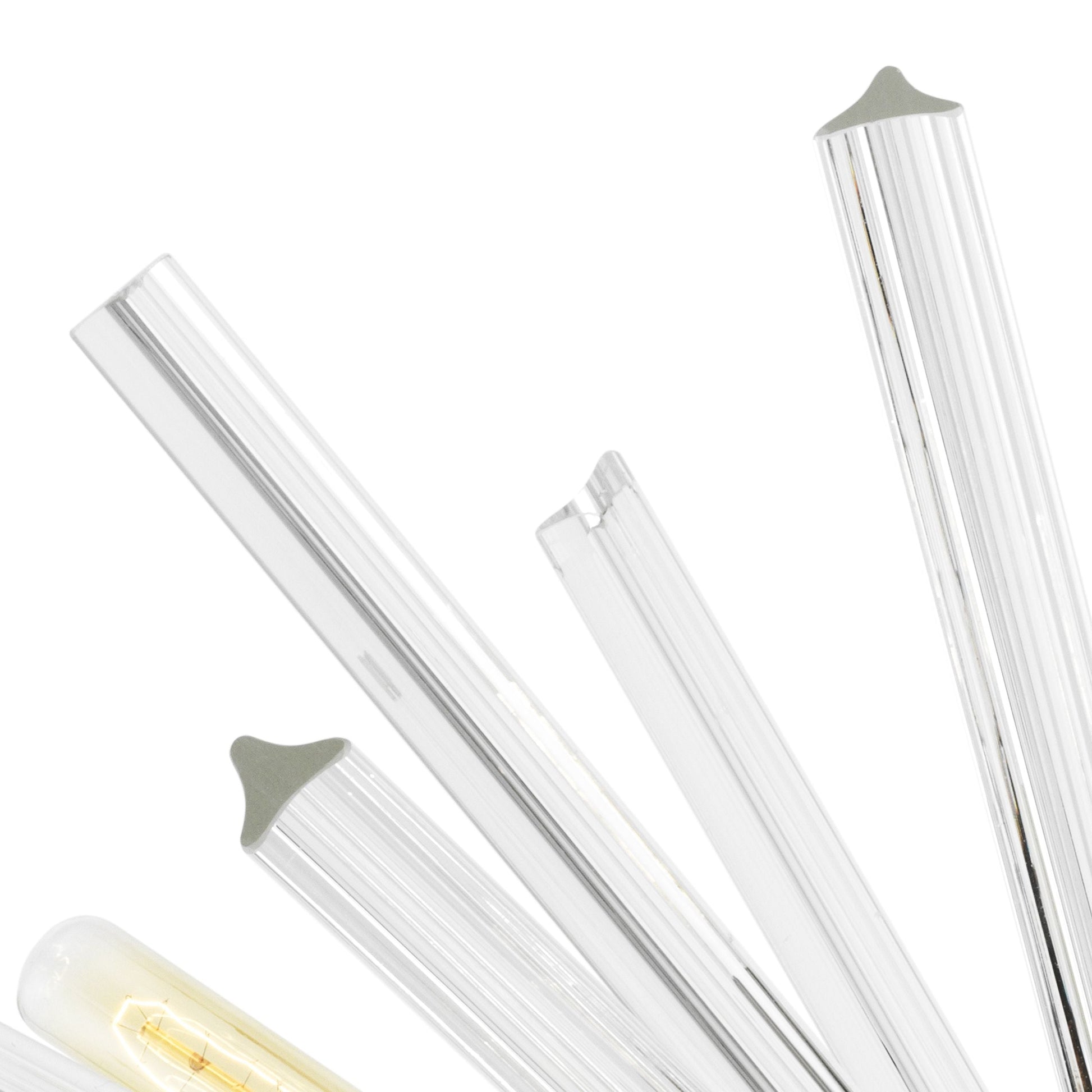 Enjoy the retro charm of the Equalizer S Chandelier, a contemporary interpretation of the classic Sputnik chandelier. The armature with brass and black finish features a starburst design of contrasting smoke glass rods. With 9 glistening light fittings it creates a commanding installation from above.