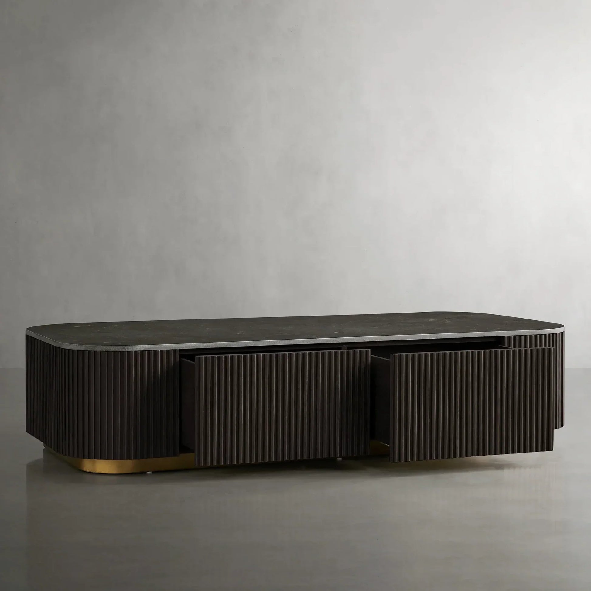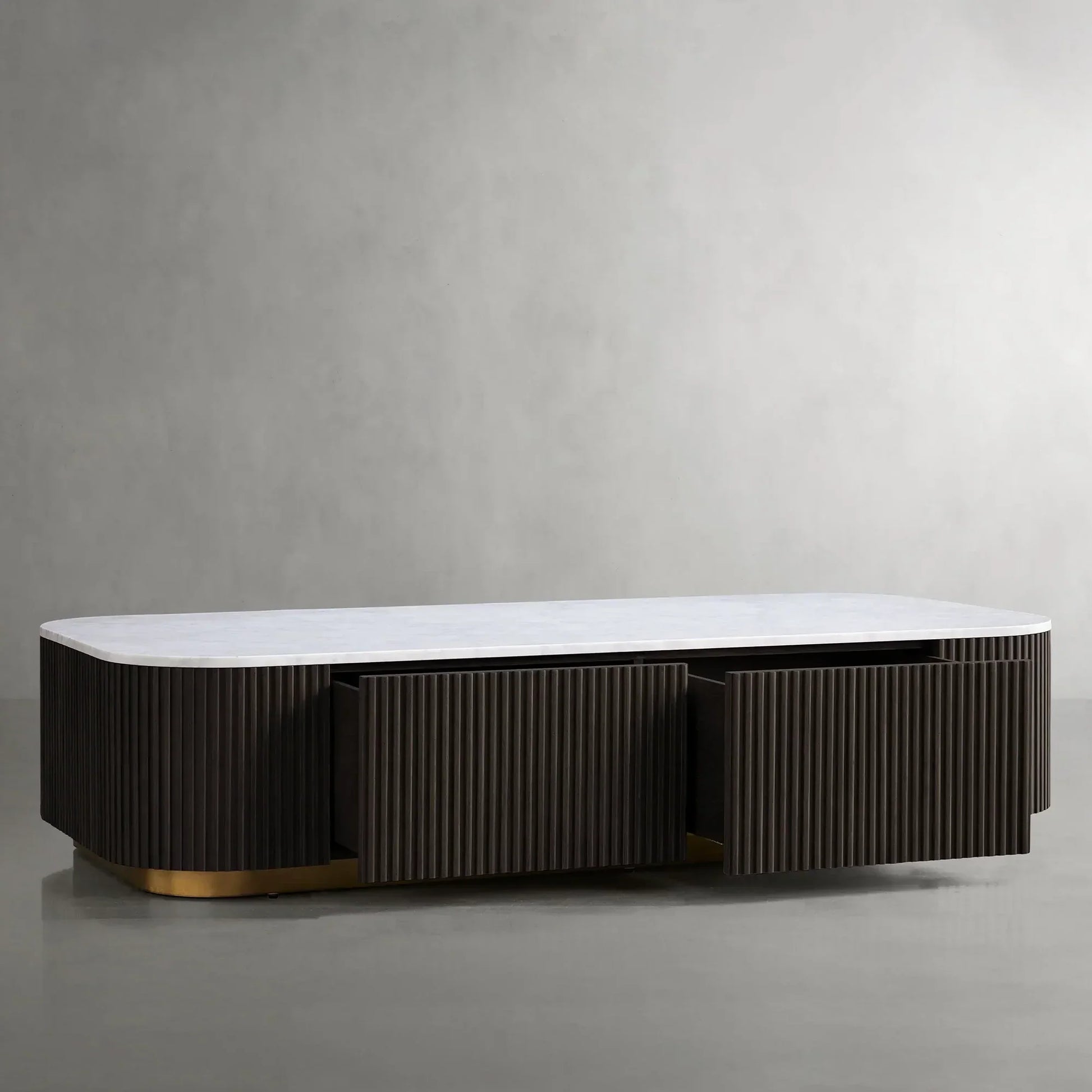 The Arden Storage Coffee Table brings together timeless form and functional utility in a beautifully crafted centerpiece. Made from hand-finished Finnish pine or white oak, the table features the collection’s signature reeded oak detailing and rests on a zinc-alloy plinth base with a light brass finish. The clean, architectural silhouette is enhanced by discreet built-in storage, offering space to tuck away books, remotes, or living room essentials without compromising on style. Whether styled in a formal living area or a relaxed family room, the Arden Storage Coffee Table blends sculptural elegance with everyday practicality.