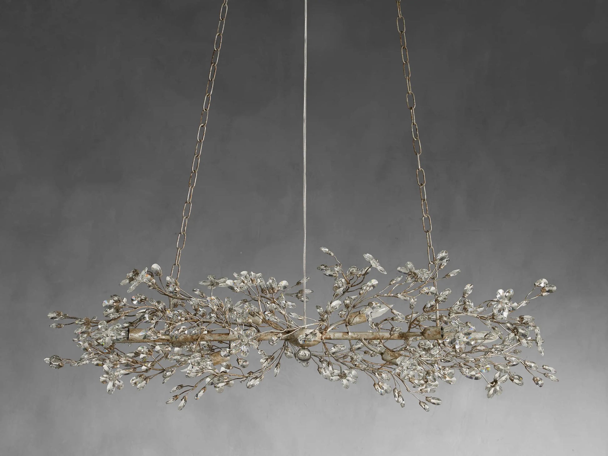 Our elegant Vine Lighting Collection features luxurious crystal florals and drops, illuminating each branch-like form. Crafted from solid iron by our artisan partners in Italy and hand-finished with silver or gold leaf, each piece draws inspiration from the beauty of nature and showcases exceptional craftsmanship.