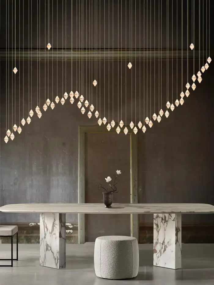 Inspired by the beauty of precious stones and the creativity of the craftspeople who work them. Created from alabaster, a material with a long history of use in the visual arts. Loved for its distinct veining and beautiful light-emitting properties. Each piece is individually selected for the correct texture and colour in the Ebro Valley region, northeast Spain.