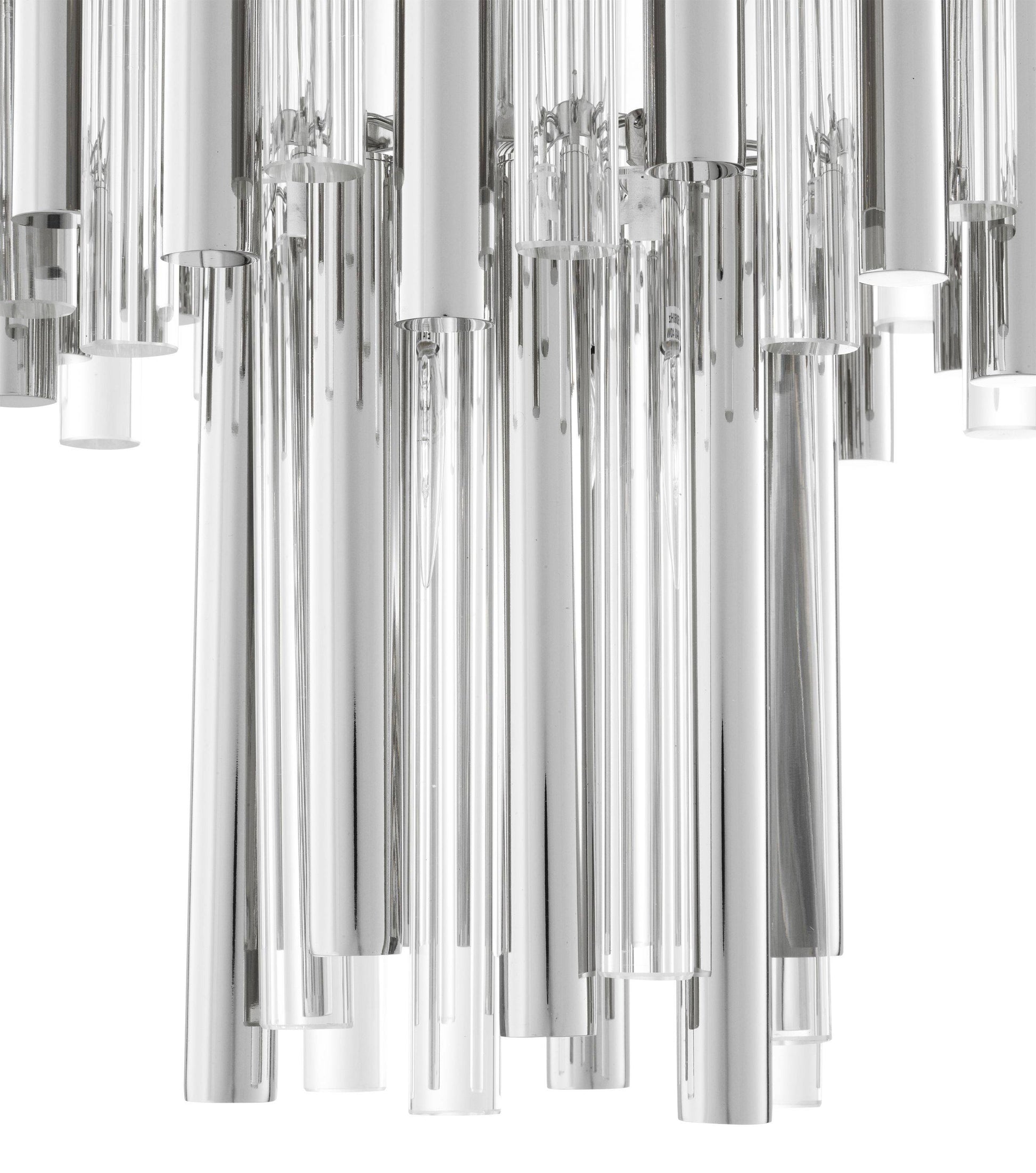 Capture the look of pure luxury with the Gigi Chandelier. Like a glamorous piece of jewellery, this lustrous luminary provides optimum radiance in your décor. This Art Deco style chandelier features a tapered body with 3 hoops. Rods of clear glass and gold/nickel finished metal are draped around the hoops.