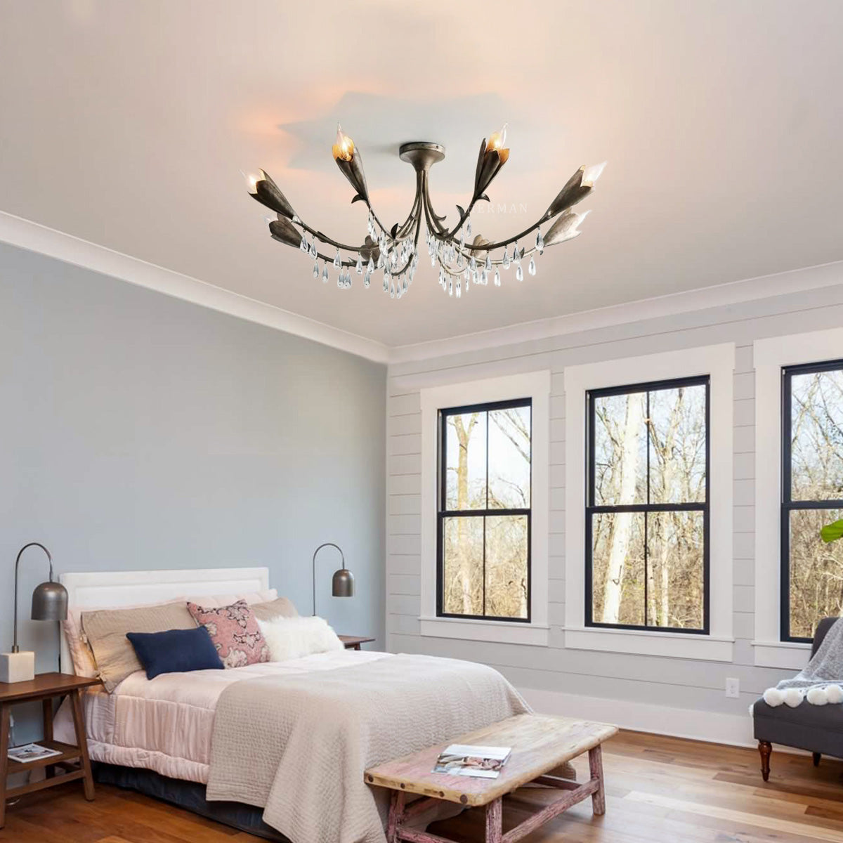 This is collection combines Gothic-style ironwork with Italian glass. The features sliver wrought iron with delicate lines, exuding a unique classical charm. The lampshade is made from exquisite Italian glass, available in colored or clear options, casting a soft and enchanting glow when the light passes through.And creating a mysterious and elegant ambiance, making it perfect for spaces like living rooms or dining areas.