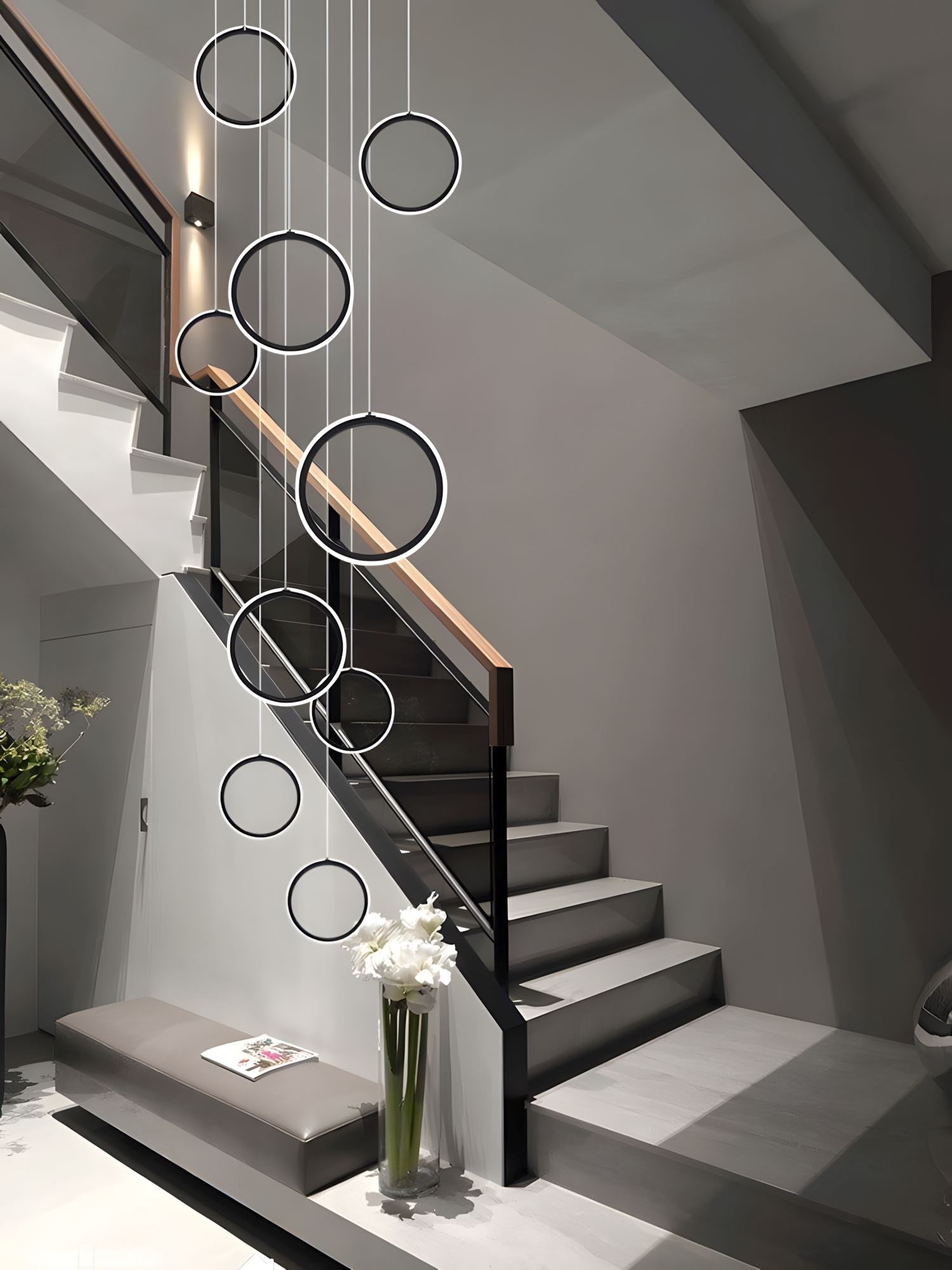 Meet Hedron, a refined and modern masterpiece that captures the essence of simple yet compelling design. Hanging gracefully in an asymmetrical fashion from a thin wire, each element is meticulously arranged for optimal reach and balance. The centerpiece is a robust aluminum ring, casting a vibrant array of finishes and colors to illuminate your space. Elevate your home with this contemporary marvel, introducing both elegance and a playful touch to your living area.