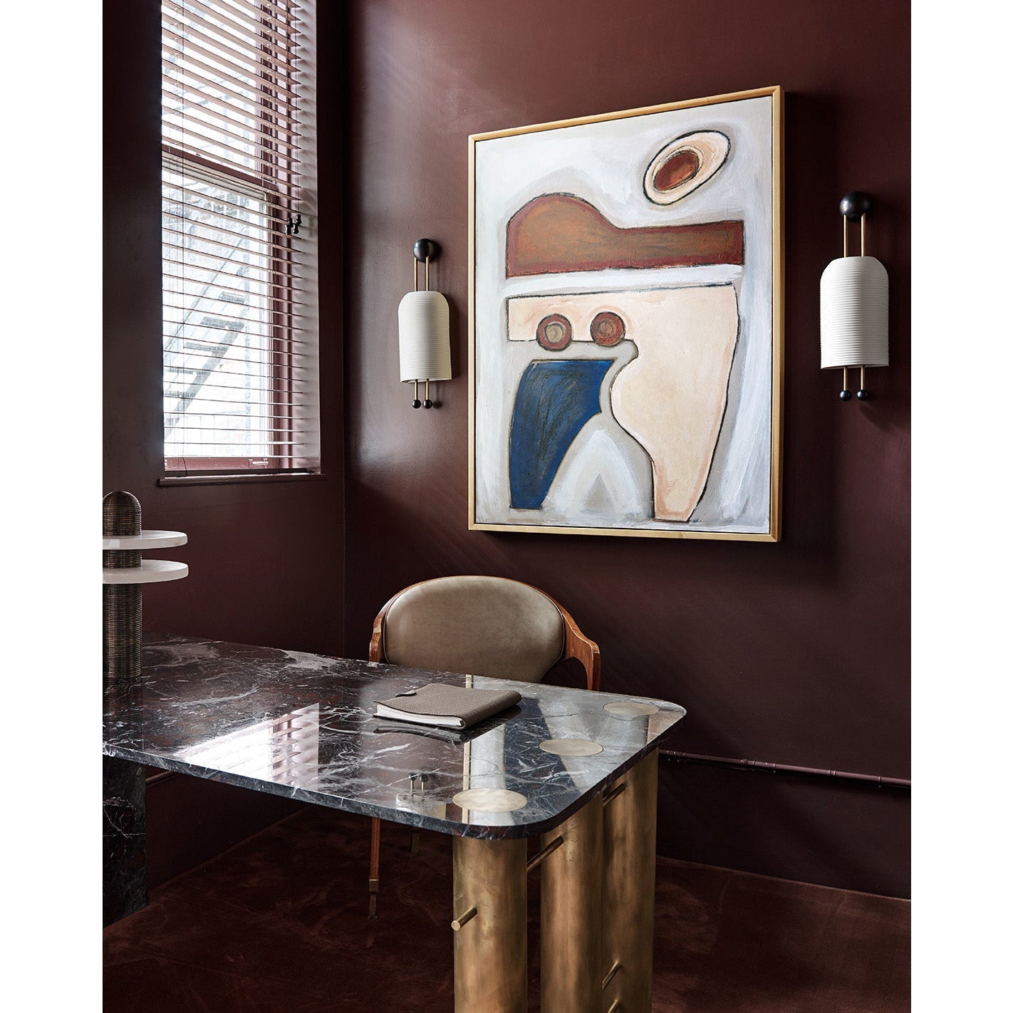 Illuminate your space with the elegant Lantern Glass Sconce by Radilum. Featuring slip-glass forms and finely incised fluting, this sconce adds a delicate touch to any room. The repeating spheres provide a balance to the generous shades, creating a perfect blend of form and function.
