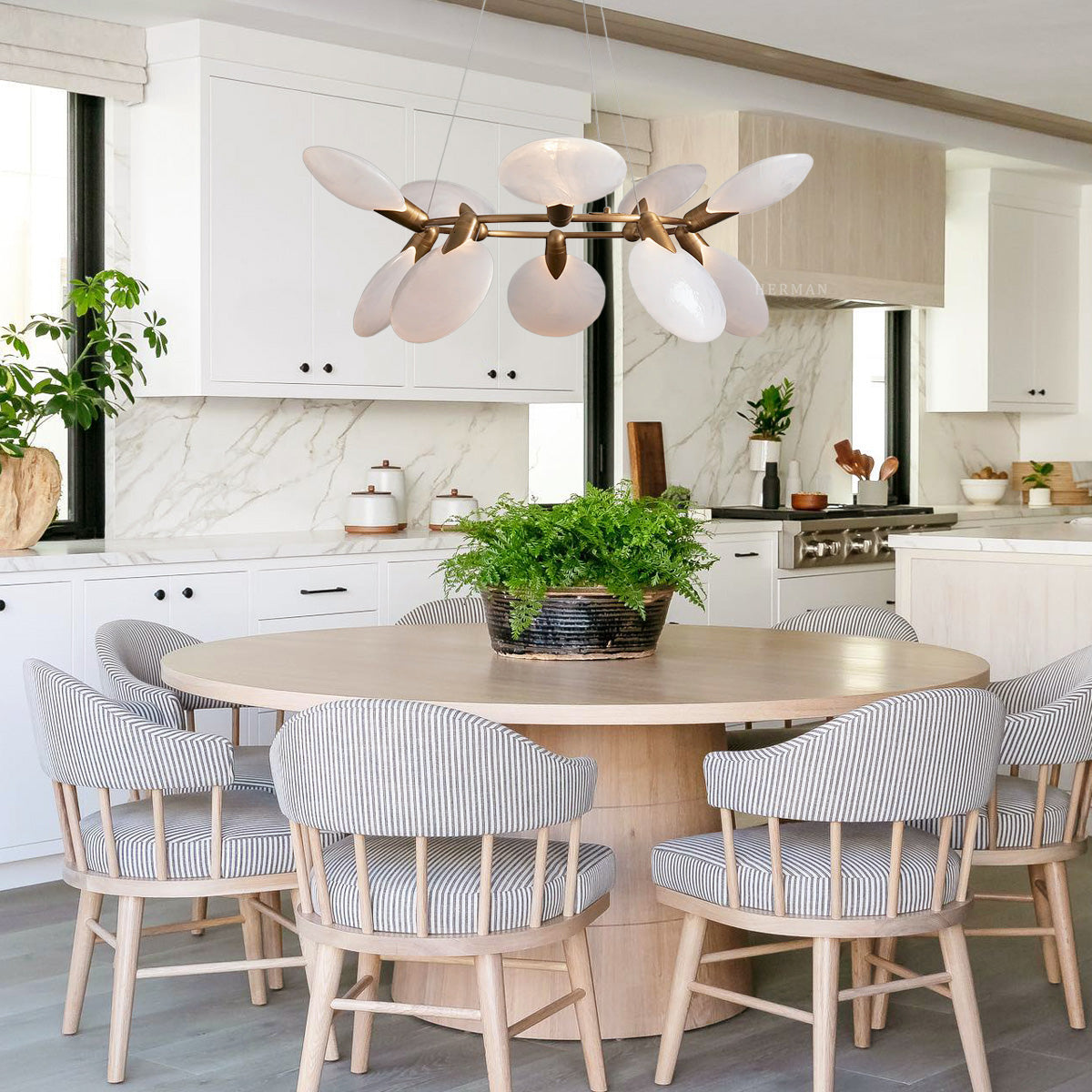 Our artfully crafted Lyla Collection brightens any room with its captivating petal-like silhouette. Each disc is hand-blown from translucent glass, the light within illuminating the natural swirls, streaks, and textural ripples.