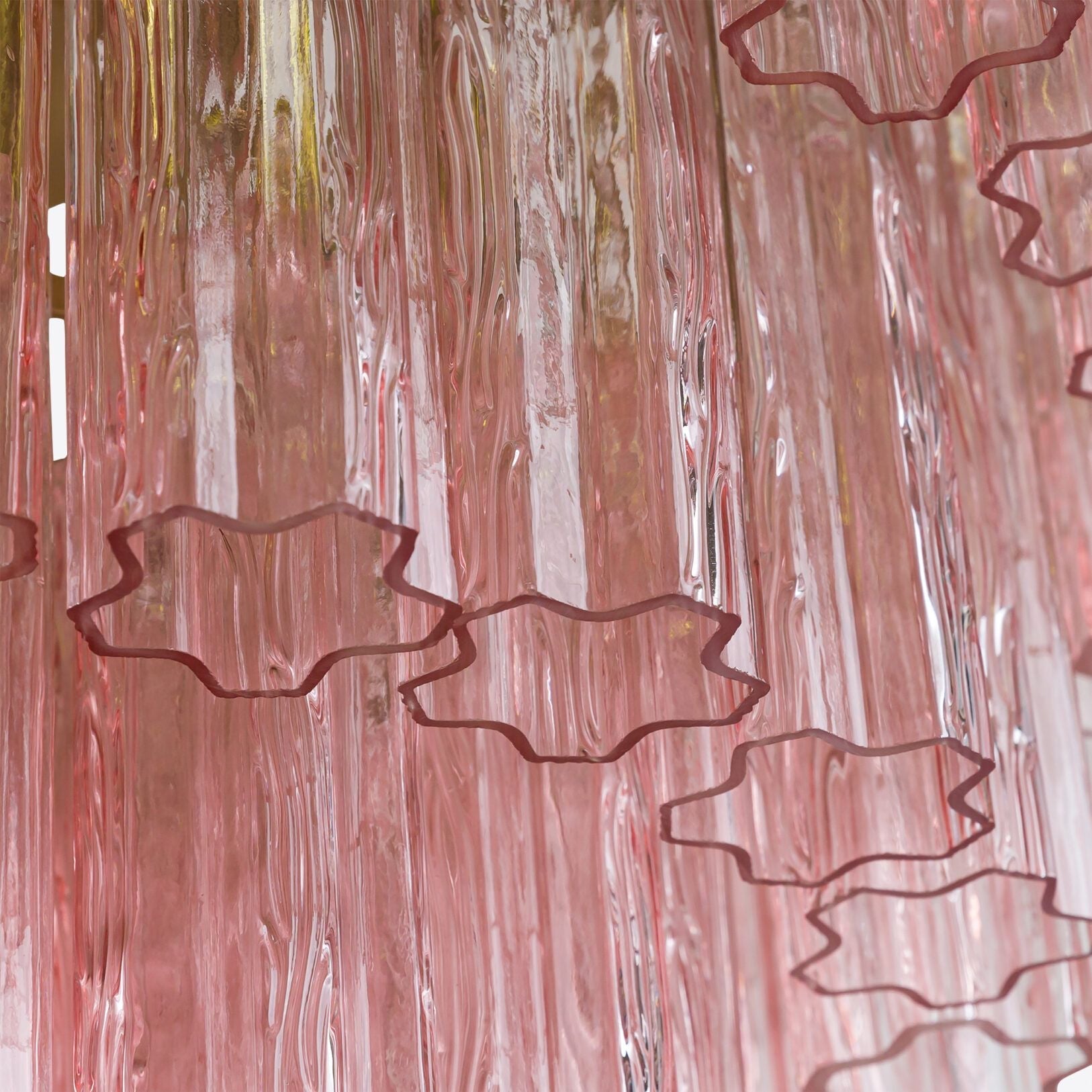Three tiers of fluted glass tubes create this beautiful mid-century inspired chandelier. The textured glass tubes are individually hung from a Satin Brass frame. This style is available in three colours; a rich, sophisticated Smoked Quartz, a fresh blush Pink or clear glass.