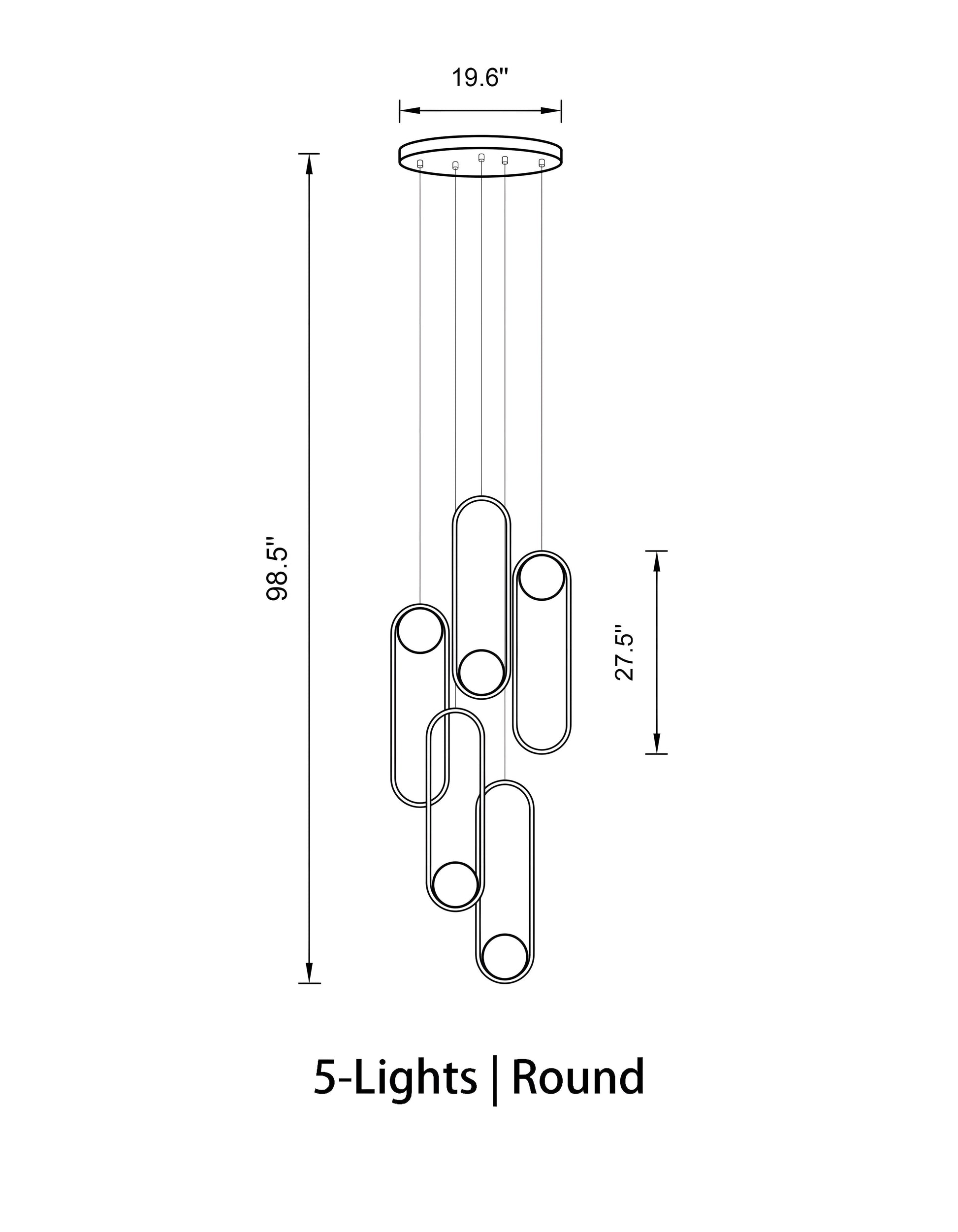 - Round - 5 Lights - 19.6" D × 98.5" H / 49.8cm D x 250.2cm H
