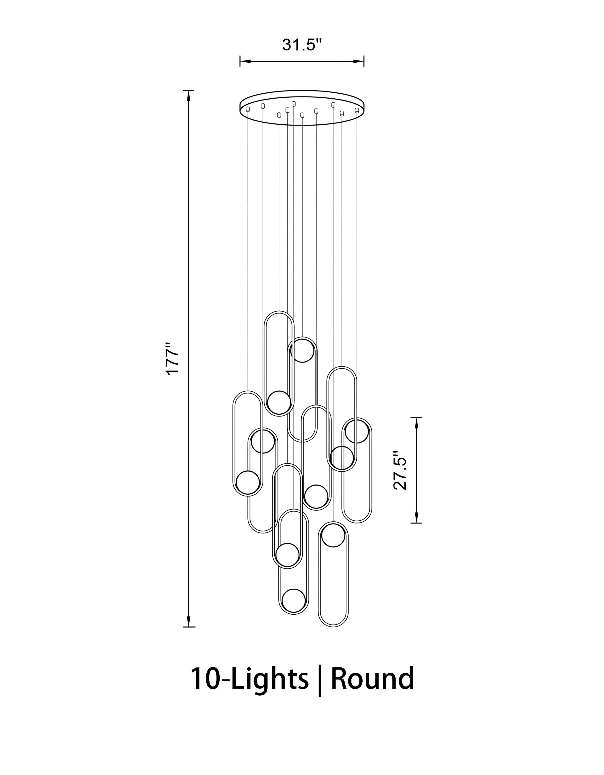 - Round - 10 Lights - 31.5" D × 177" H / 80cm D x 449.6cm H