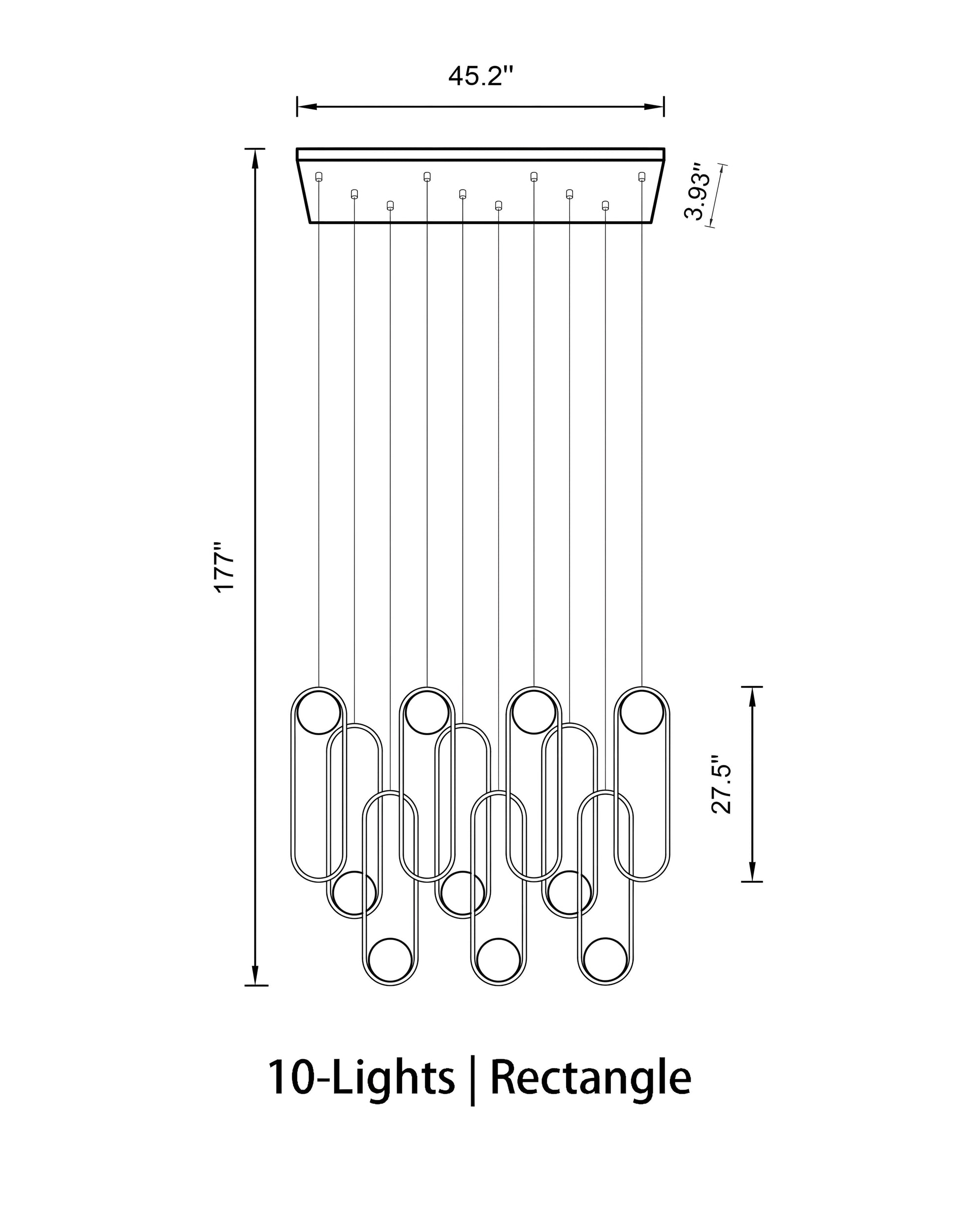 - Rectangle - 10 Lights - 45.2" L× 3.93" W× 177" H / 114.8cm L x 10cm W x 449.6cm H
