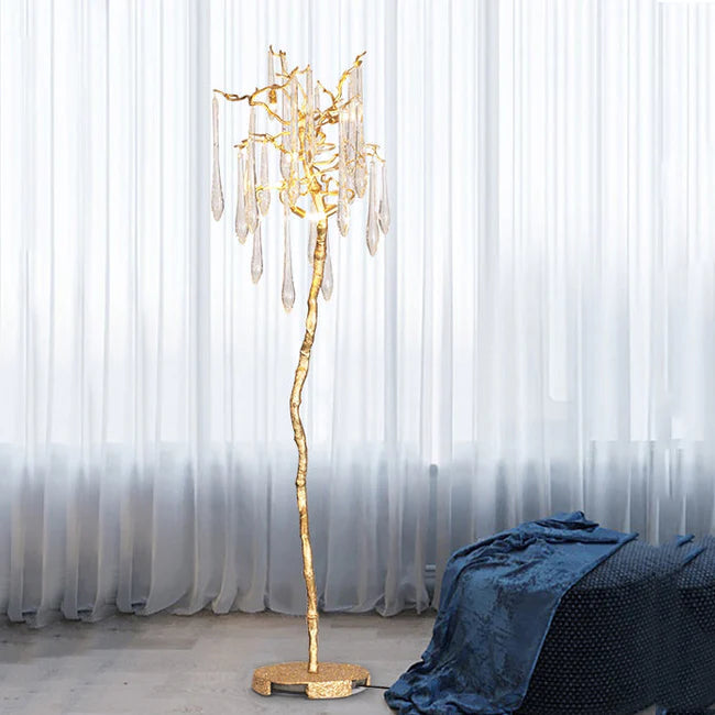 Modern Gold Crystal Droplet Branch Standing Floor Lamp