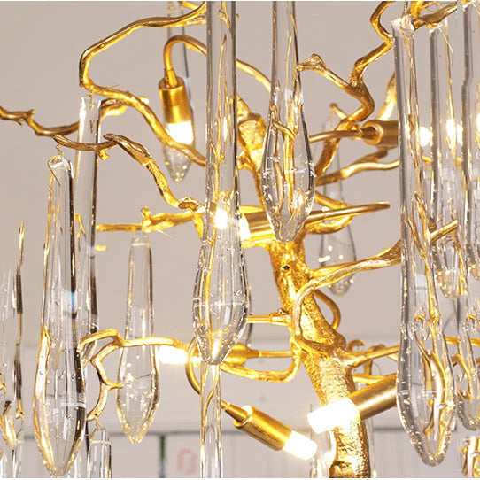Hand-crafted tree branches, Hanging sparkling crystals leaves, like ice tree after snow. Well fit with home design of luxury, contemporary, modern, mid-century, french empire. Pretty great for 2 story loft, villa, wedding hall, living room, entryway, foyer, banquet hallway, staircase, girls bedroom, Kitchen dinning room, restaurant, hotel lobby.