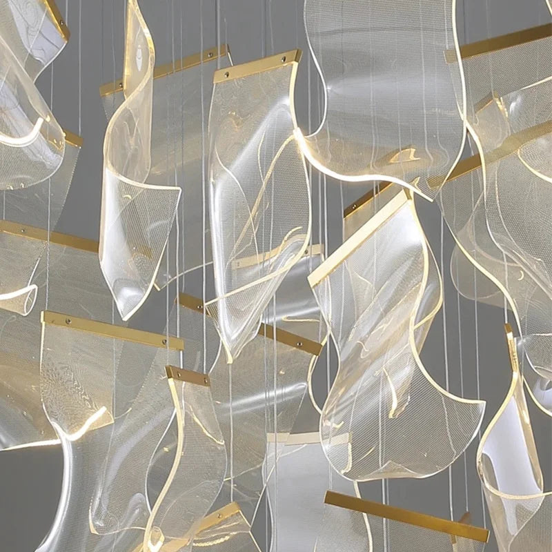 Modern Style Hotel Villa Stairs Bronze Iron Ceiling Light Hanging Acrylic LED Pendant Light