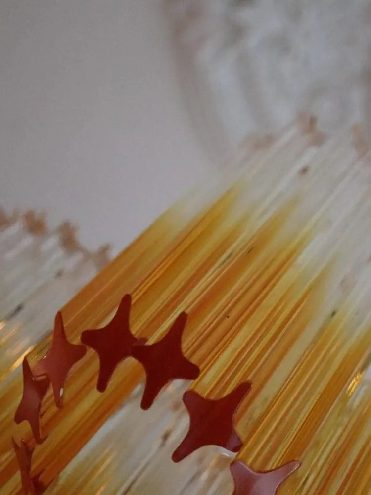 Experience the ultimate in luxury lighting with our Murano Chandelier. The Viennetta design boasts 114 exquisite prisms, all in a stunning amber color. Elevate your space with the timeless elegance and craftsmanship of Murano glass.