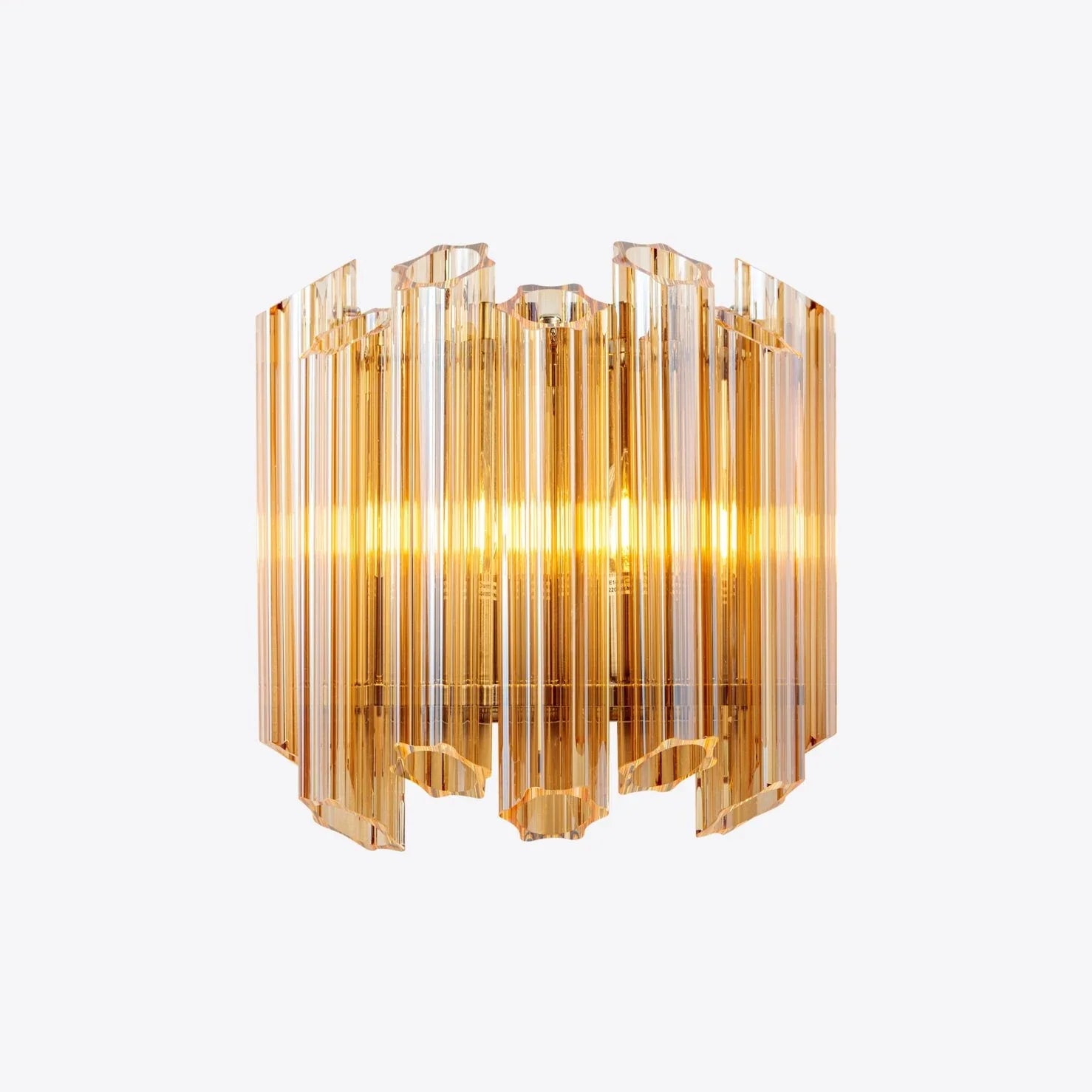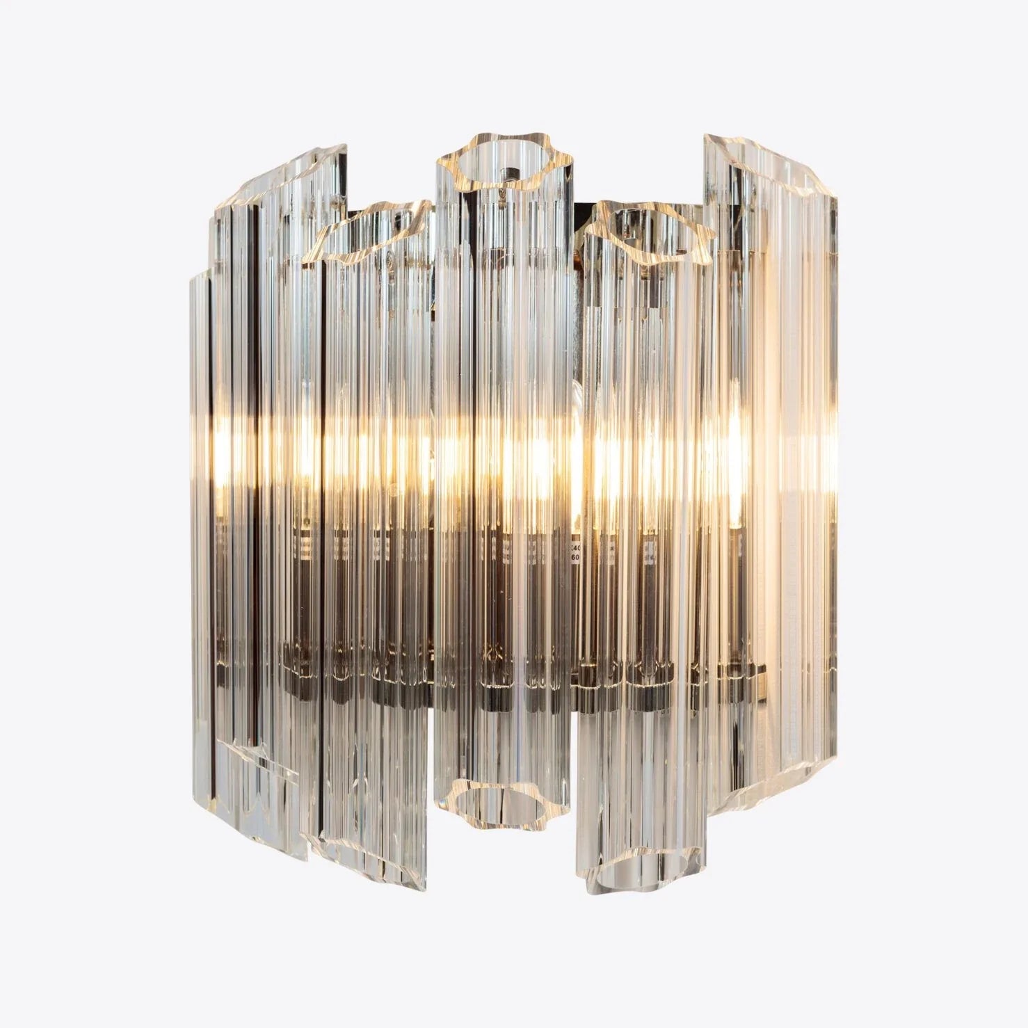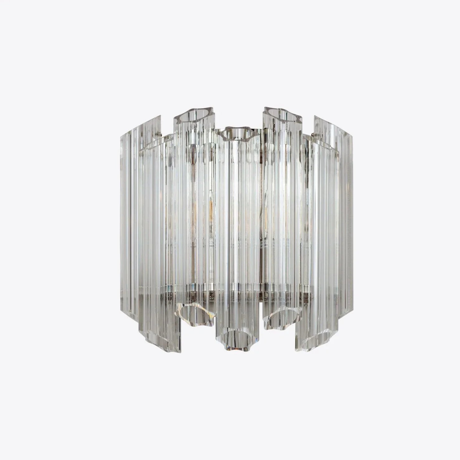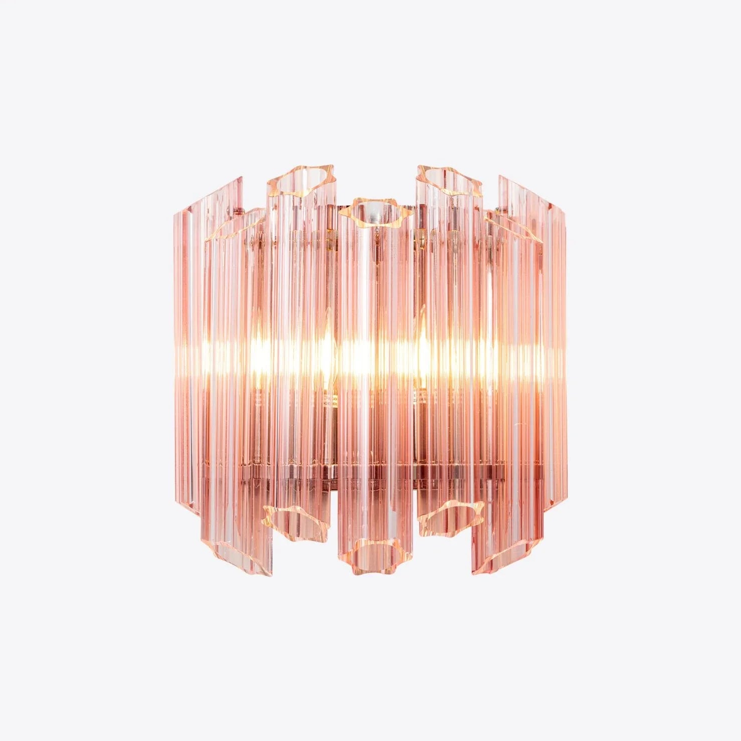 Our most loved Palermo glass chandelier is now available as a vintage-influenced wall light. Inspired by the glamour of the 1970s, the Palermo lights are constructed from hexagonal tubes of glass delicately suspended from a nickel or brass plated iron frame. This sconce, part of the Palermo range is also available in three colours of glass – amber, pink and smoked mirror. We also offer the Palermo chandelier in the same glass finish and in three sizes.