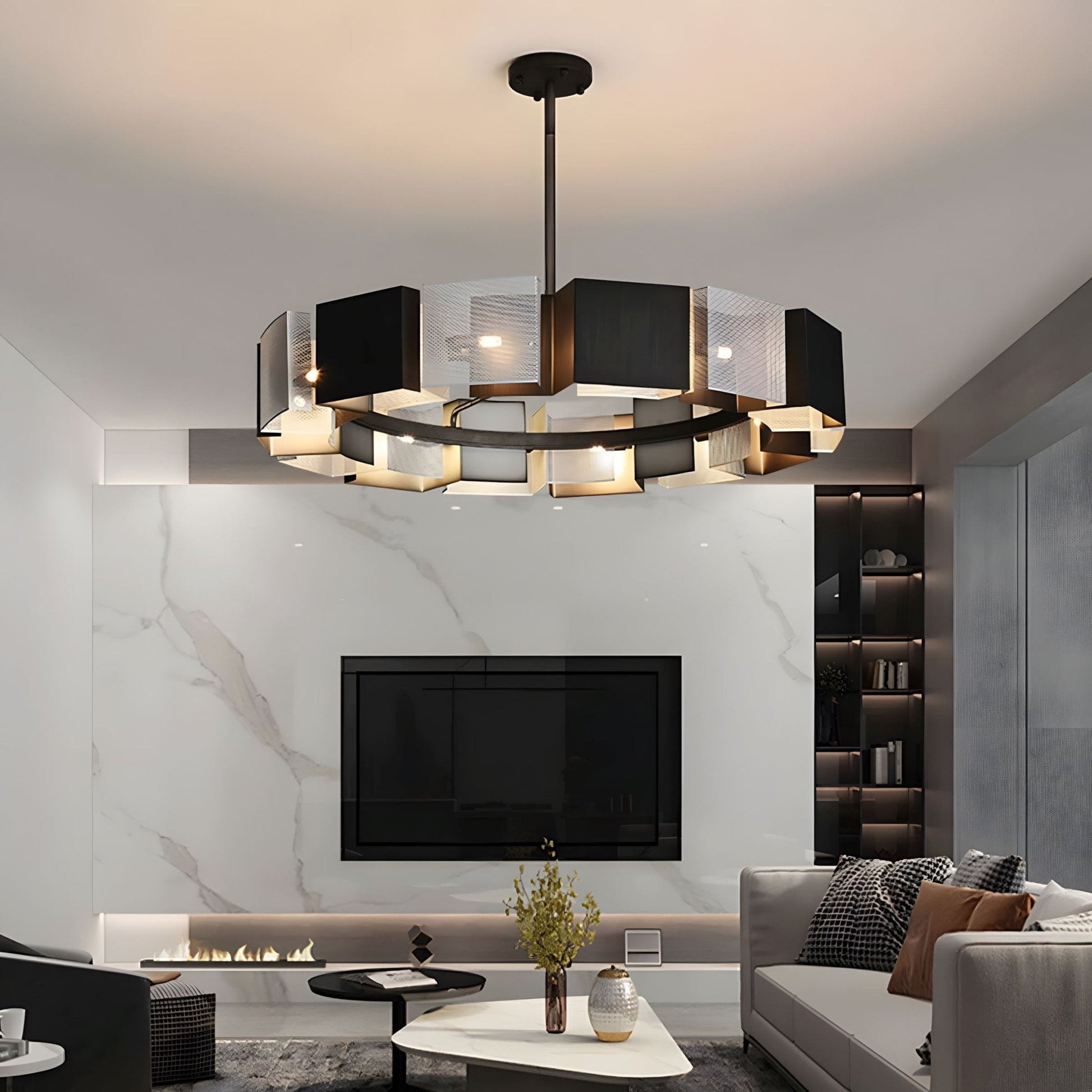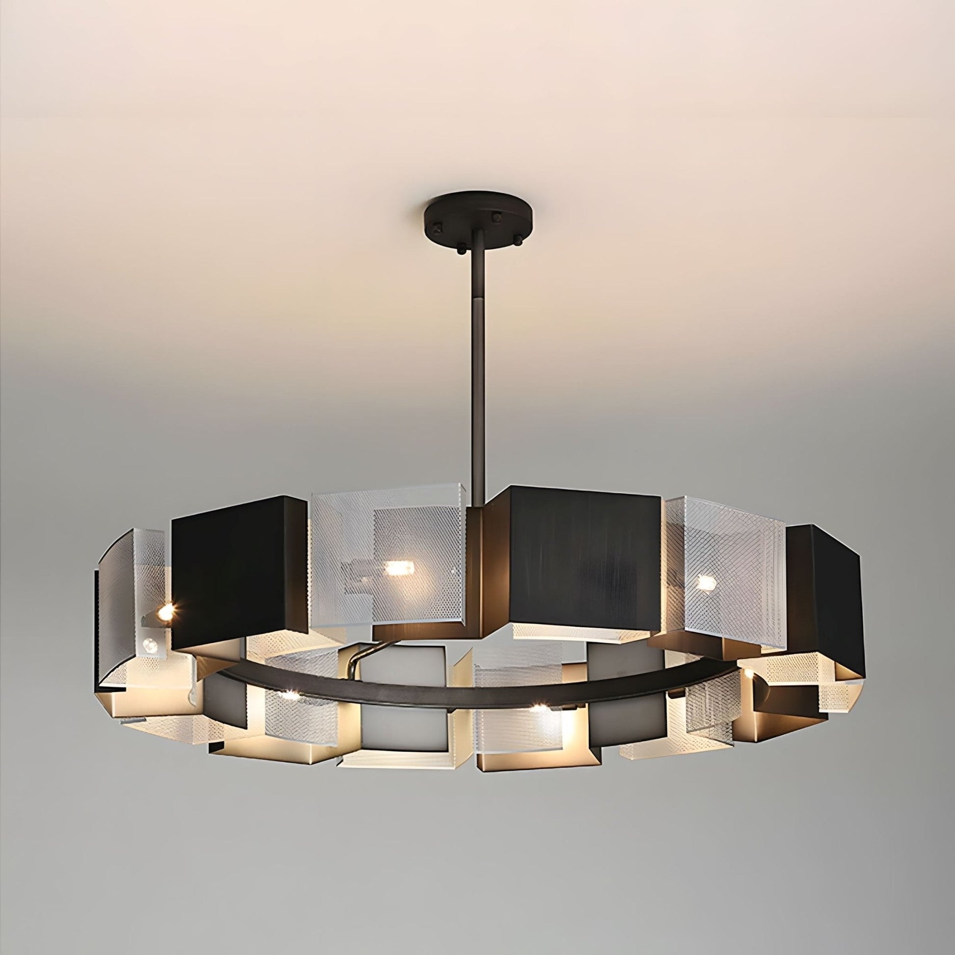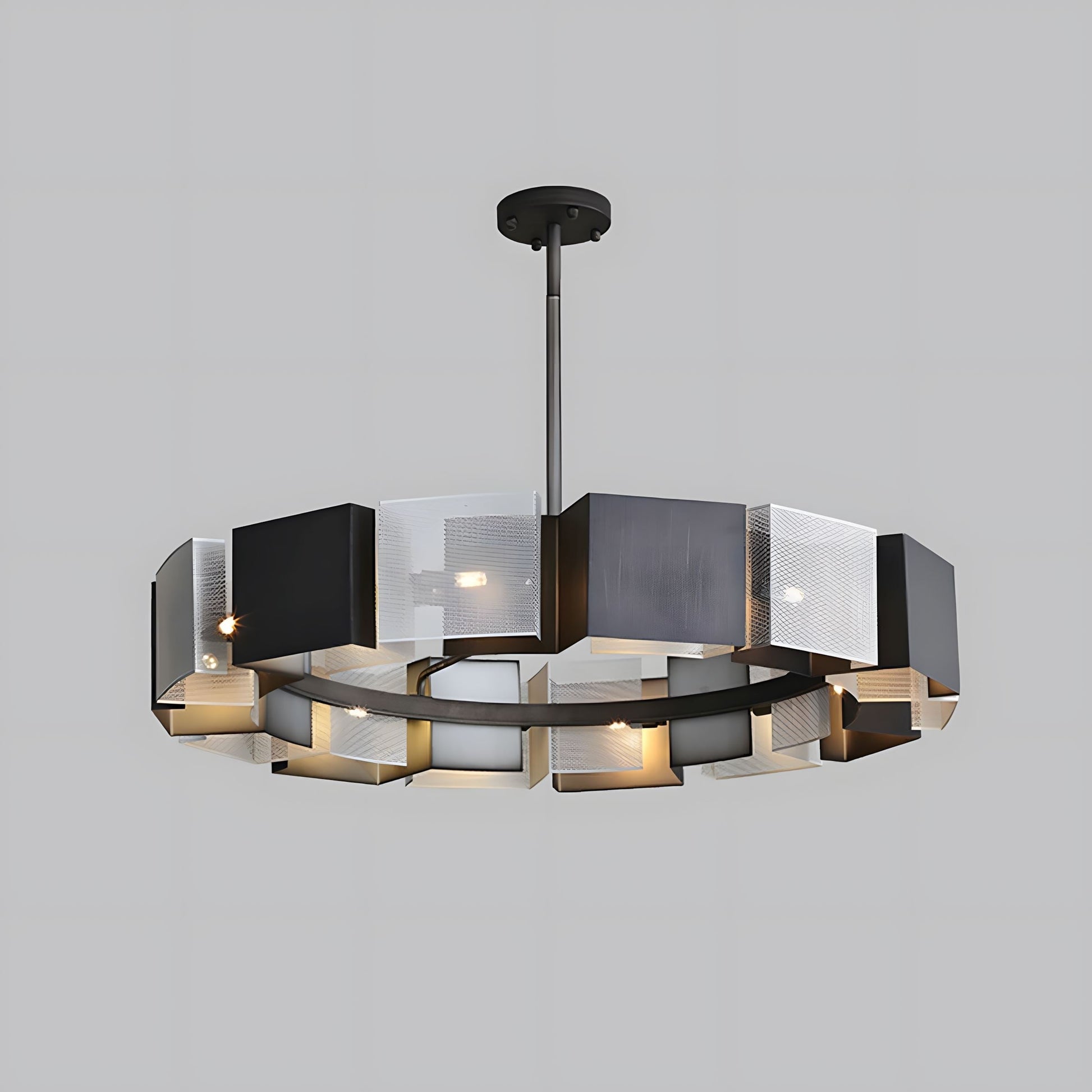 Presenting the Paragon Chandelier, an exquisite blend of vintage-inspired design and contemporary materials. This stunning fixture features classic clean lines enriched with spherical details, all encapsulated within a box-shaped shade, providing an unparalleled sparkle to your surroundings.