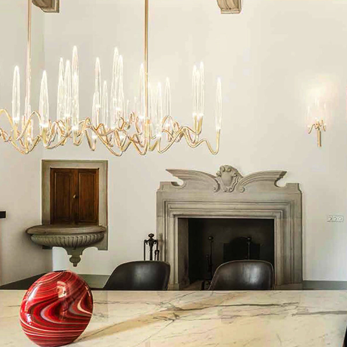 The Pezzo Crystal Wall Sconce brings refined elegance to any wall with its shimmering crystal accents and sleek design. Available in widths of 15" and 10", it offers a beautiful balance of light and texture, perfect for hallways, living rooms, or bedside settings. Its timeless style adds a luxurious touch to both modern and classic interiors.