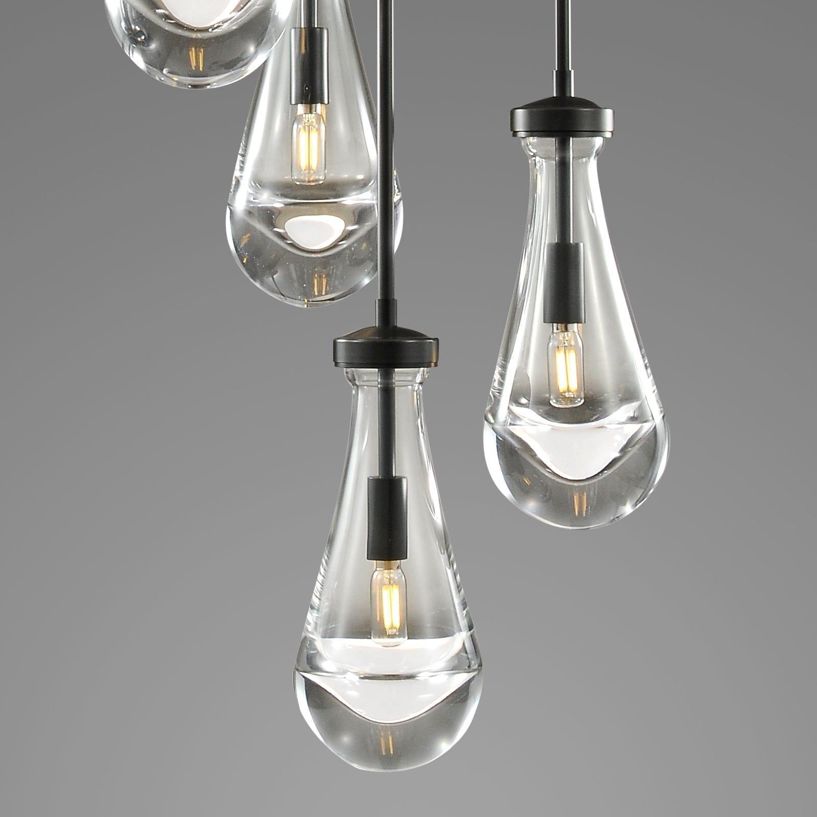 Our Raindrop Round Chandelier is a captivating piece with raindrops that look like raindrops. Handcrafted from blown glass and a metal frame, this fixture is lit to refract a rich light effect, creating the illusion of underwater lighting.