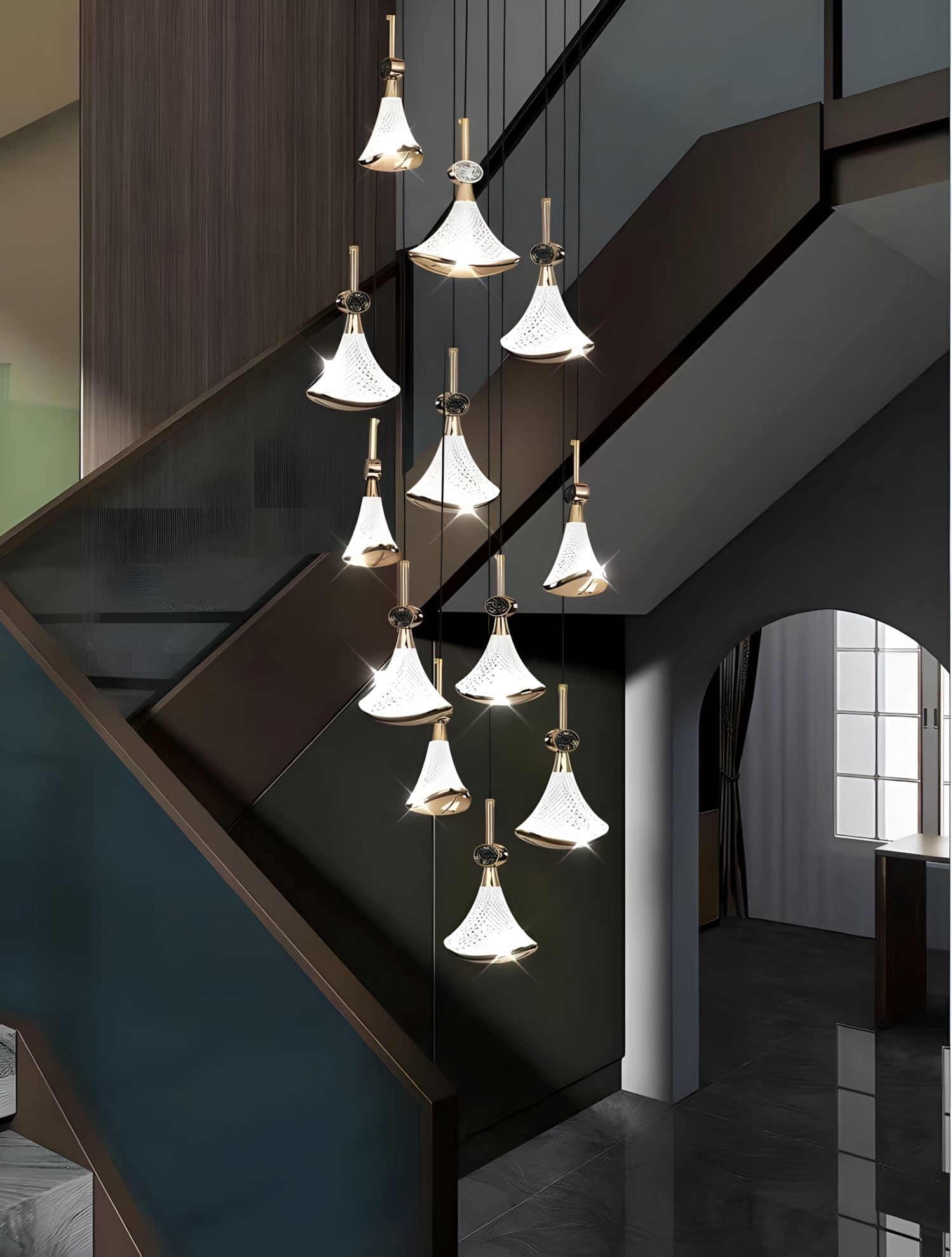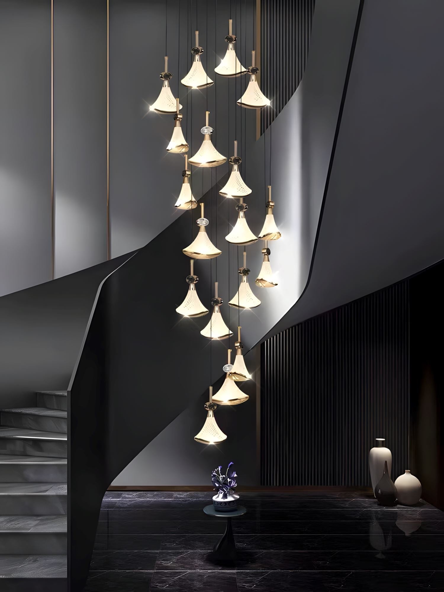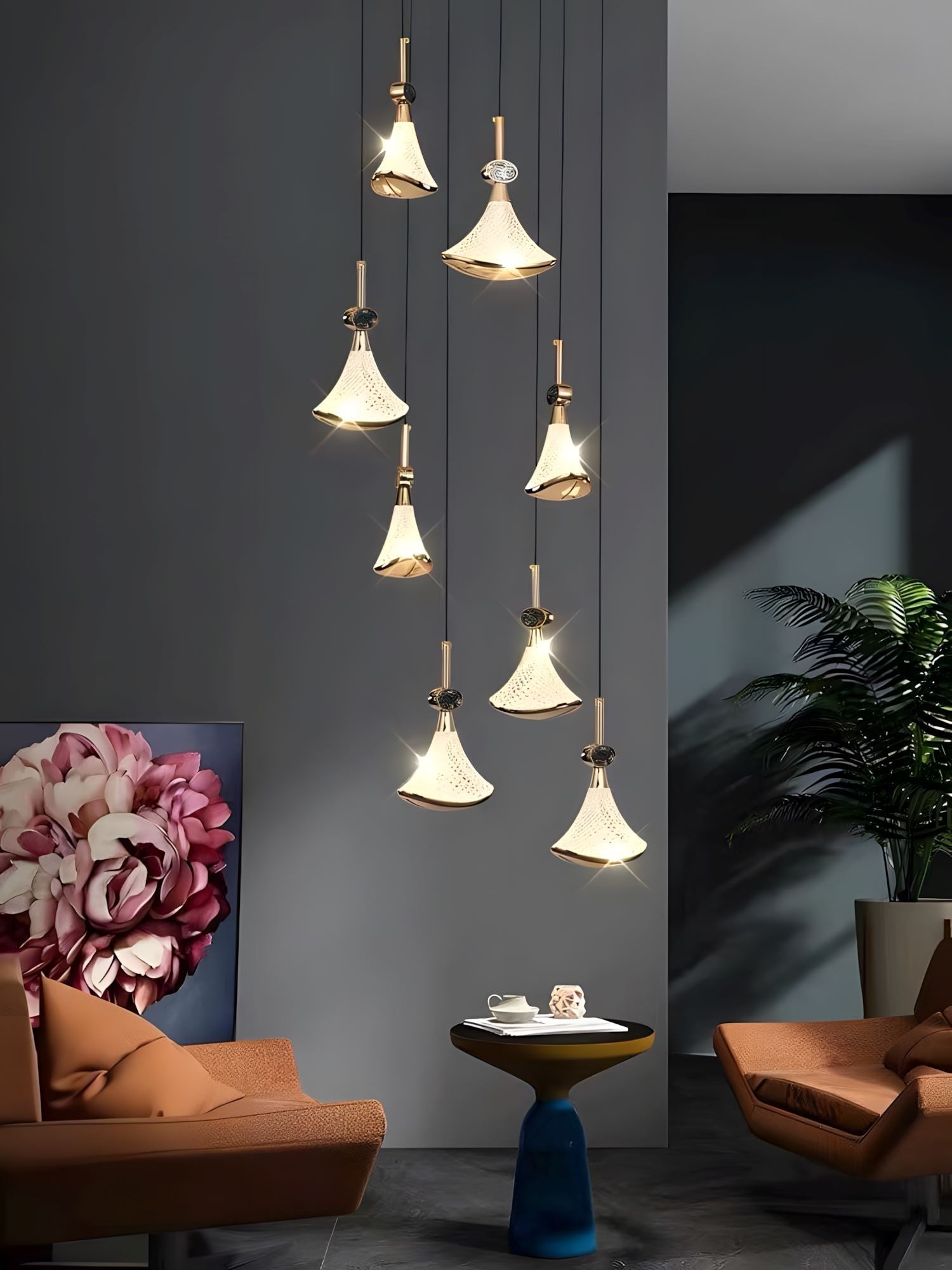 Enhance your space with the Shell Creative Staircase Pendant Light! This Nordic modern chandelier blends design finesse with an adjustable drop height for versatile installation. Ideal for contemporary or transitional spaces, it adds an artistic touch and efficient lighting, impressing guests with its aesthetic and functionality. Custom offerings available for unique style preferences.