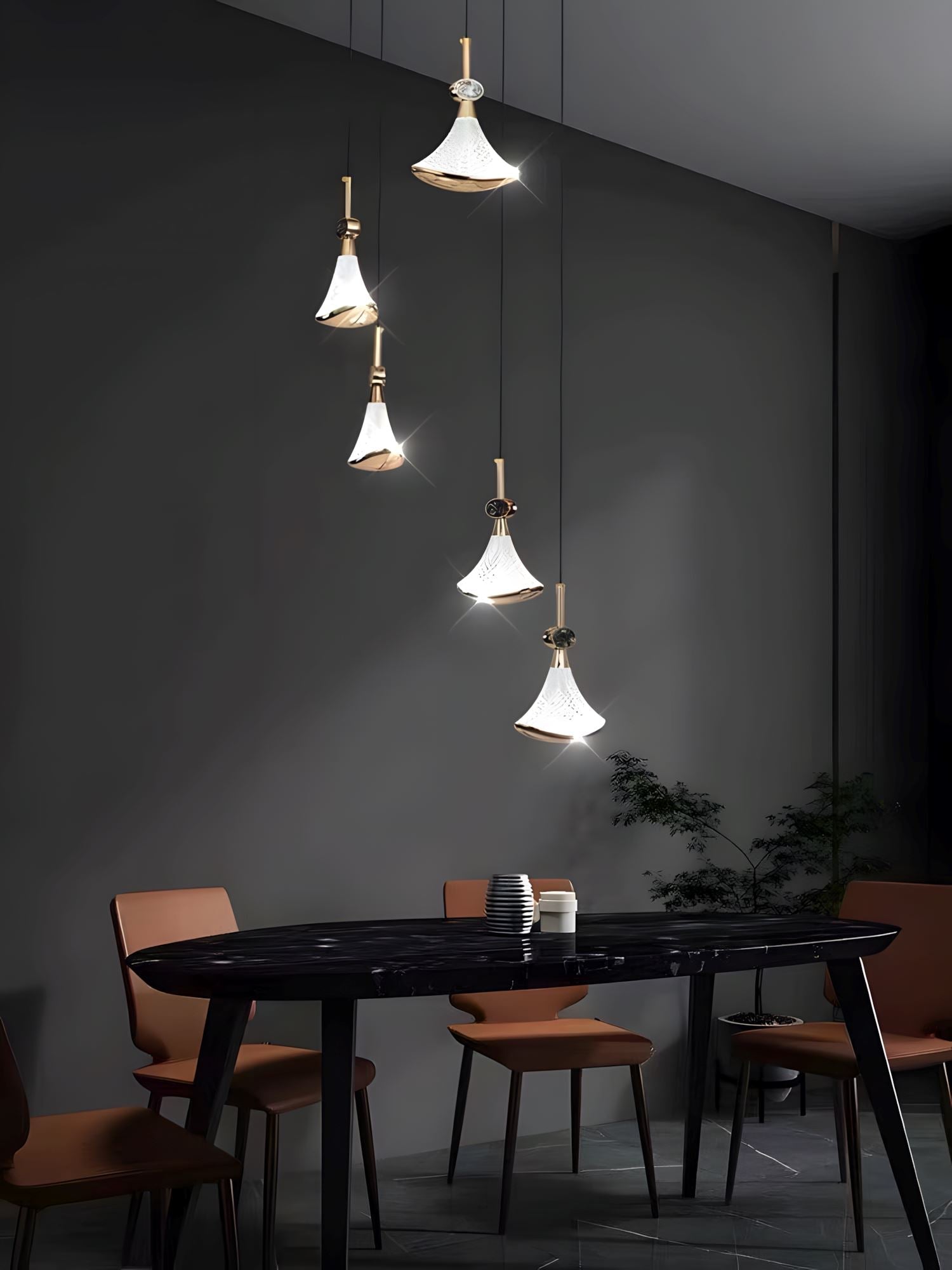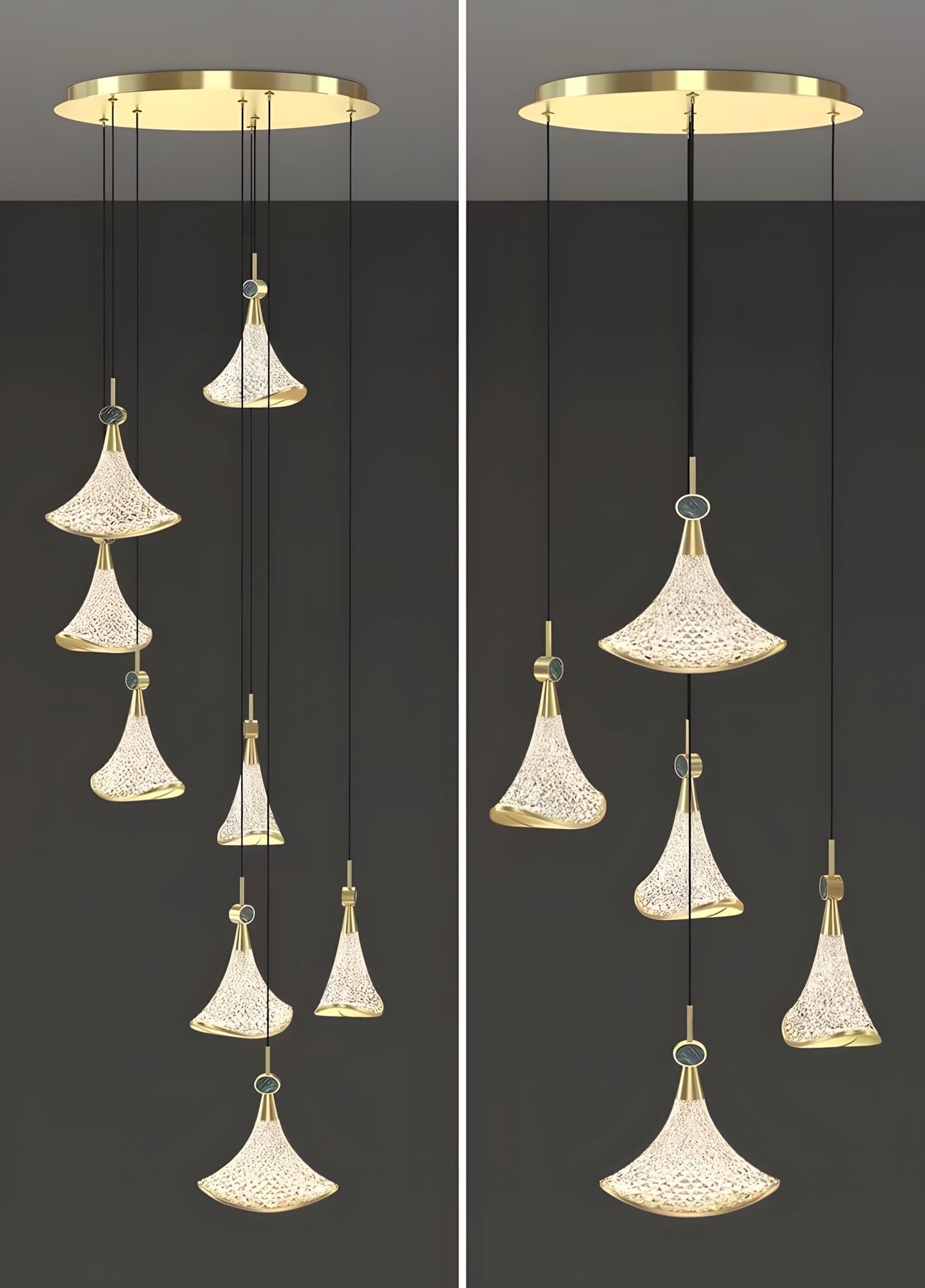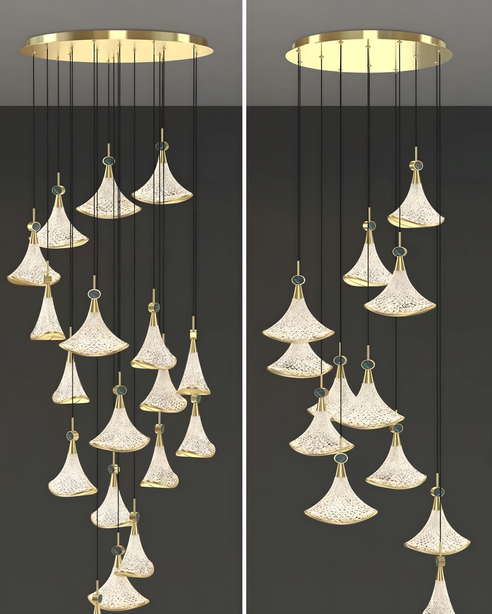 Enhance your space with the Shell Creative Staircase Pendant Light! This Nordic modern chandelier blends design finesse with an adjustable drop height for versatile installation. Ideal for contemporary or transitional spaces, it adds an artistic touch and efficient lighting, impressing guests with its aesthetic and functionality. Custom offerings available for unique style preferences.