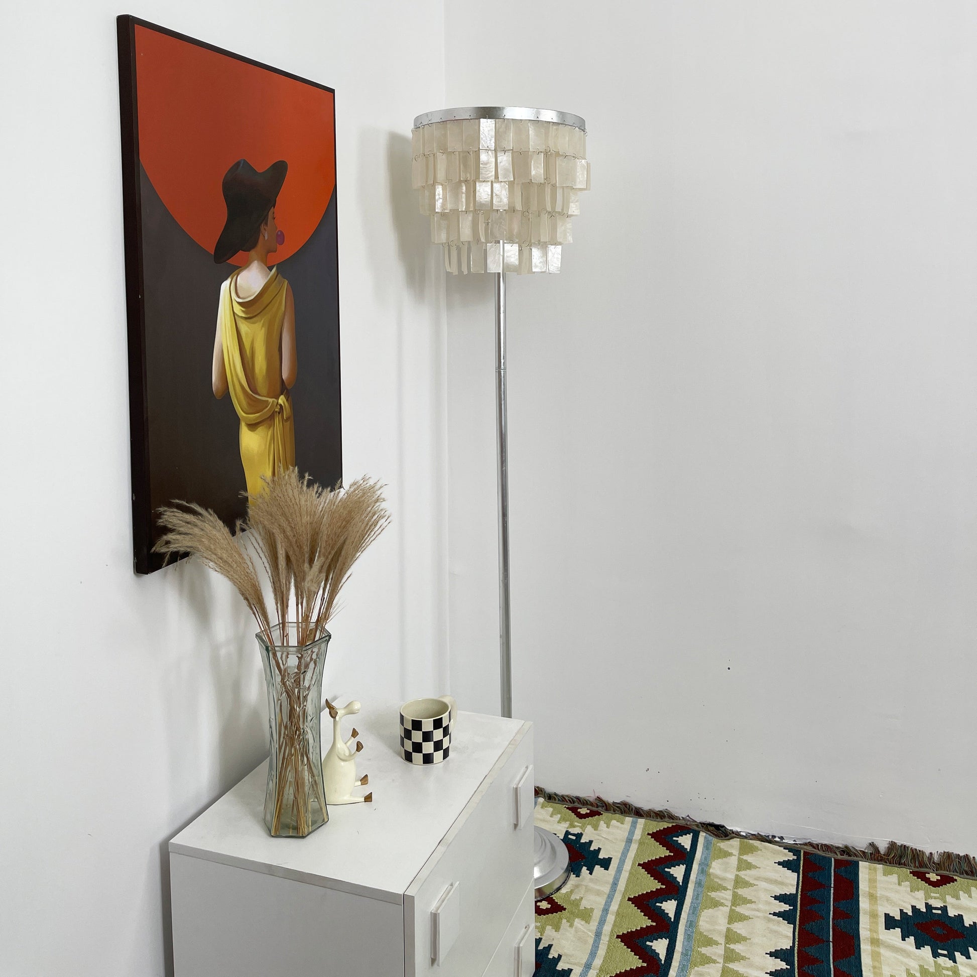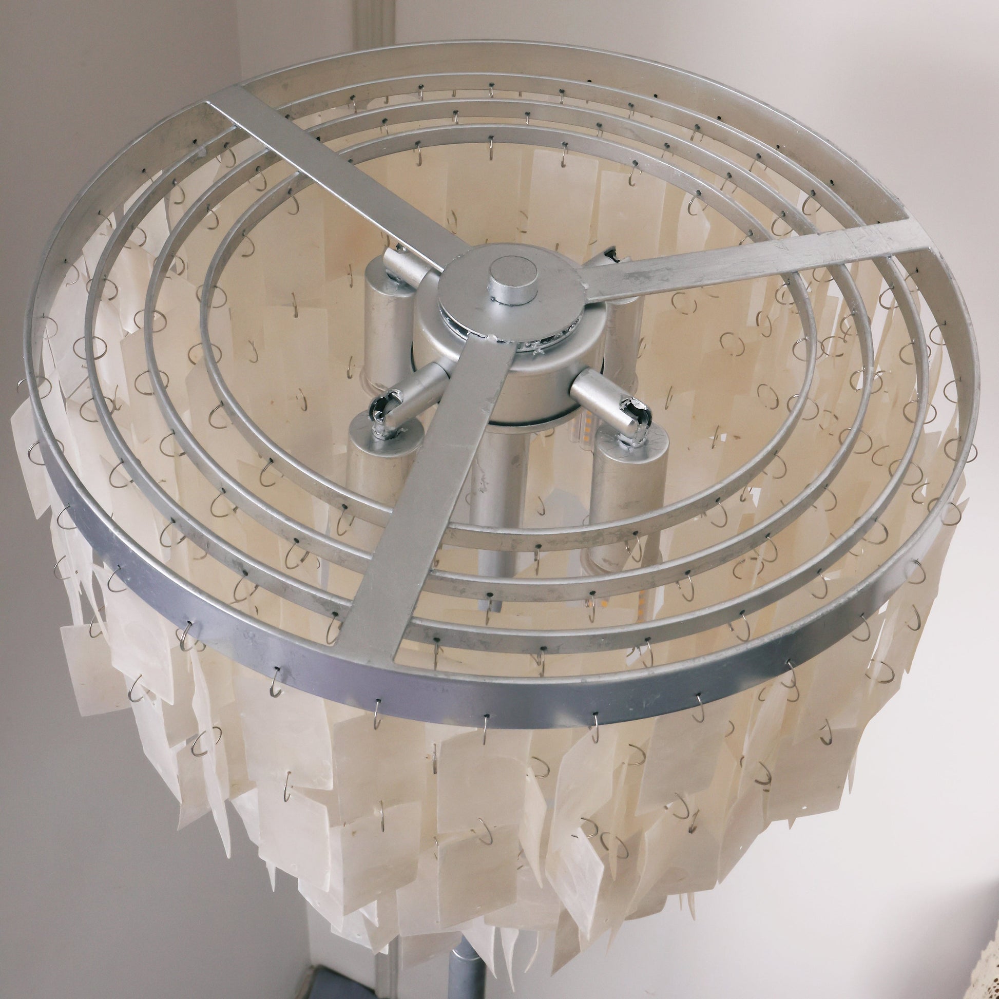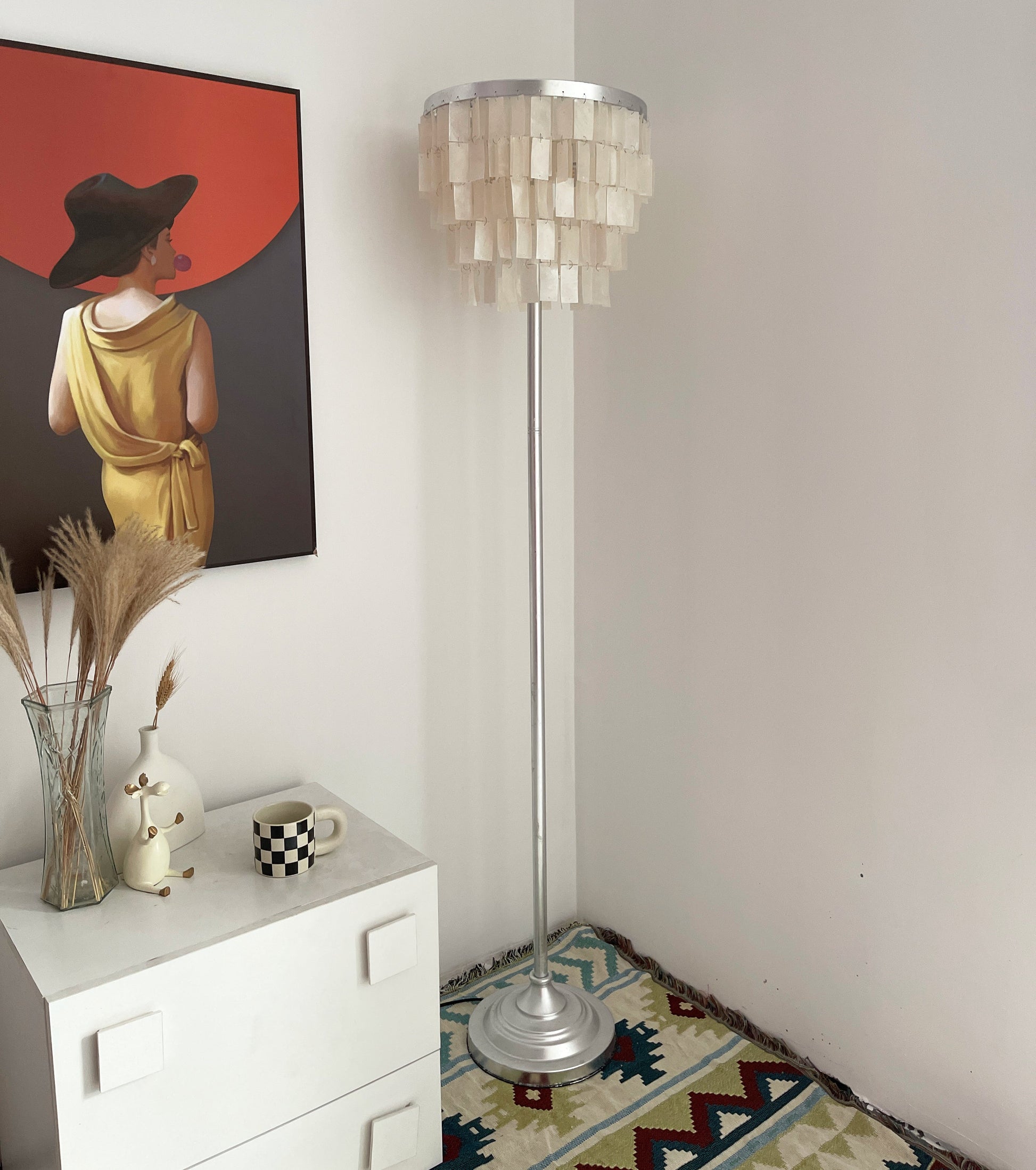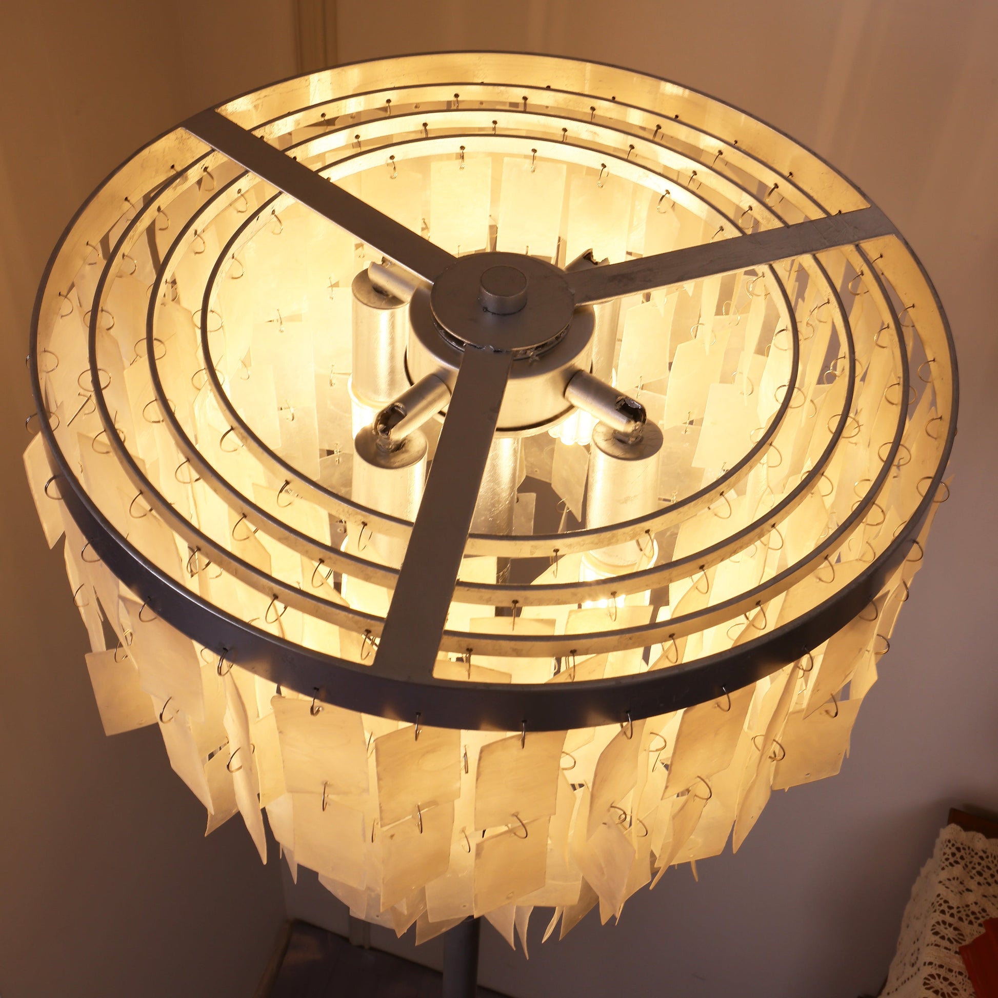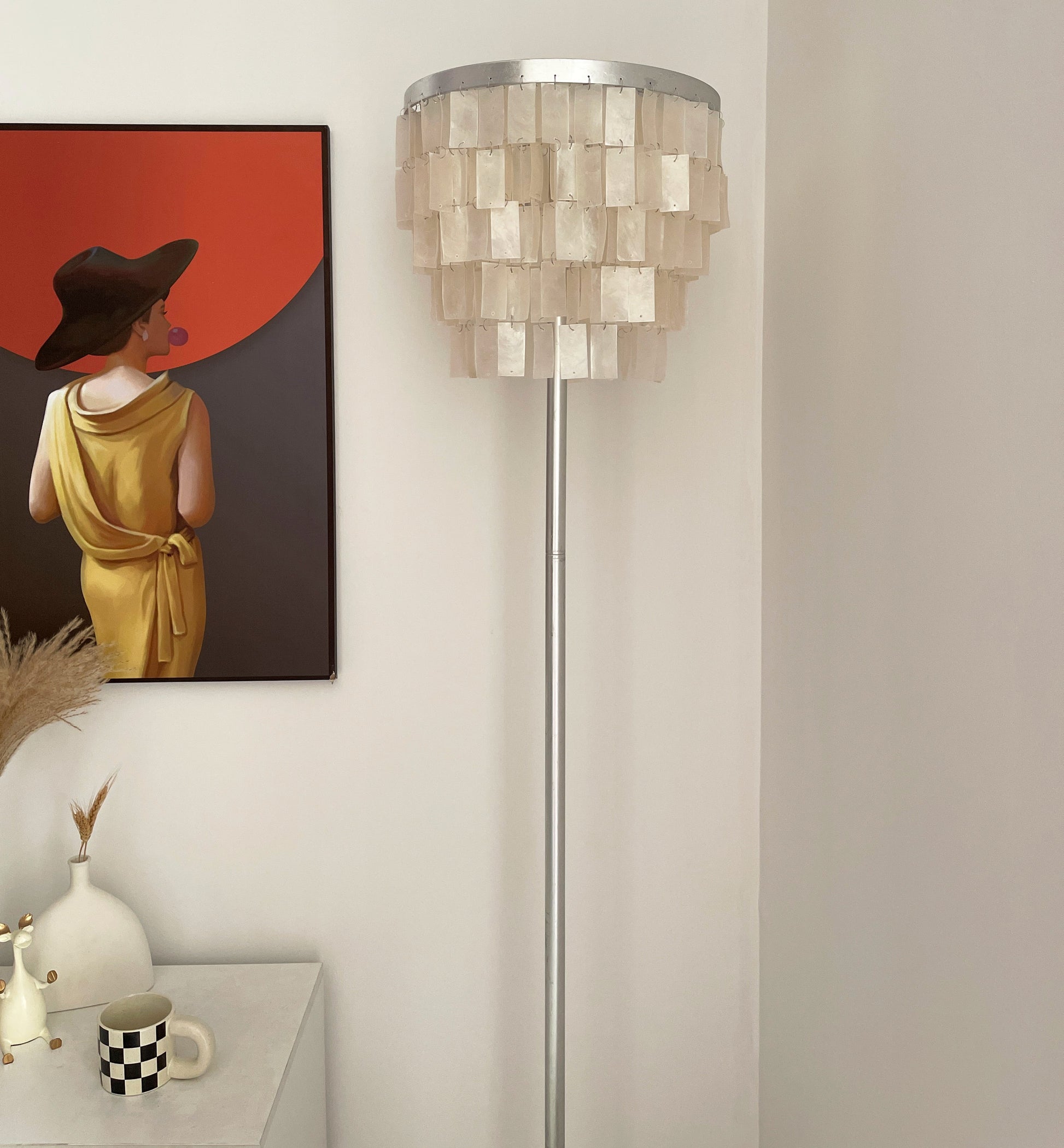 This Skye Tiered Floor Lamp, Illuminate your home with the stunning glow of the Skye Tiered Floor Lamp. Rectangular shell tiles are suspended in layers, and each shell is translucent to allow light to filter through. Our Floor Lamp showcases the shells to stunning effect, casting an ambient, pearlescent glow.