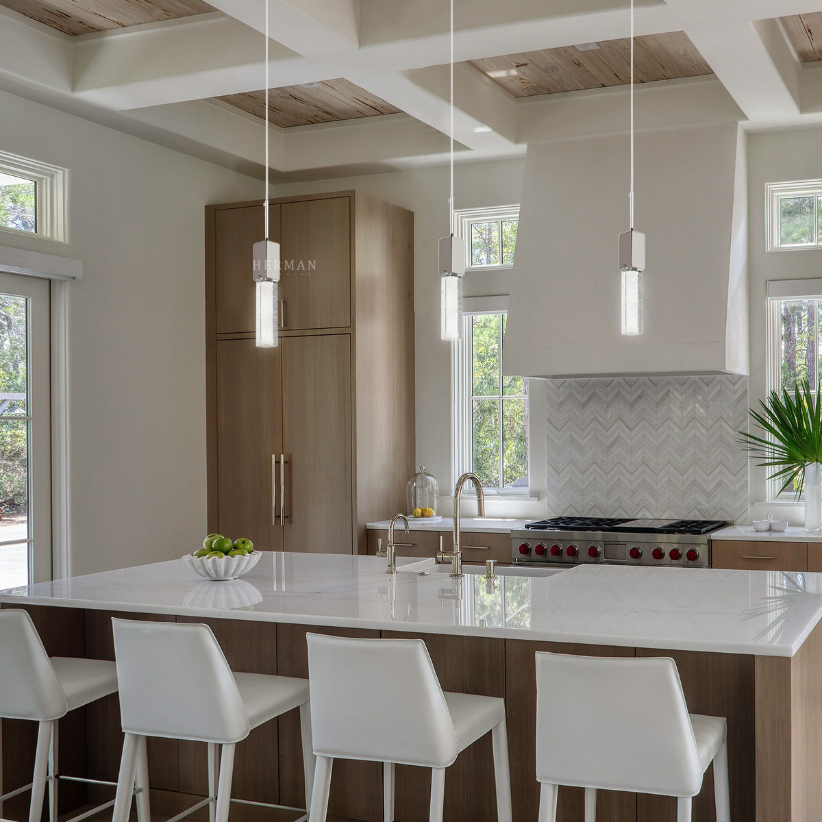 This Finesse Decor piece is made from high end glass crystal and chrome metal finish. This single crystal block hanging pendant light is perfect and versatile. The crystal has a sparkling bubbles look inside, giving it a luxurious and glamorous glance. You can adjust to any length that you want. Combine with other's to place over a counter or kitchen island.