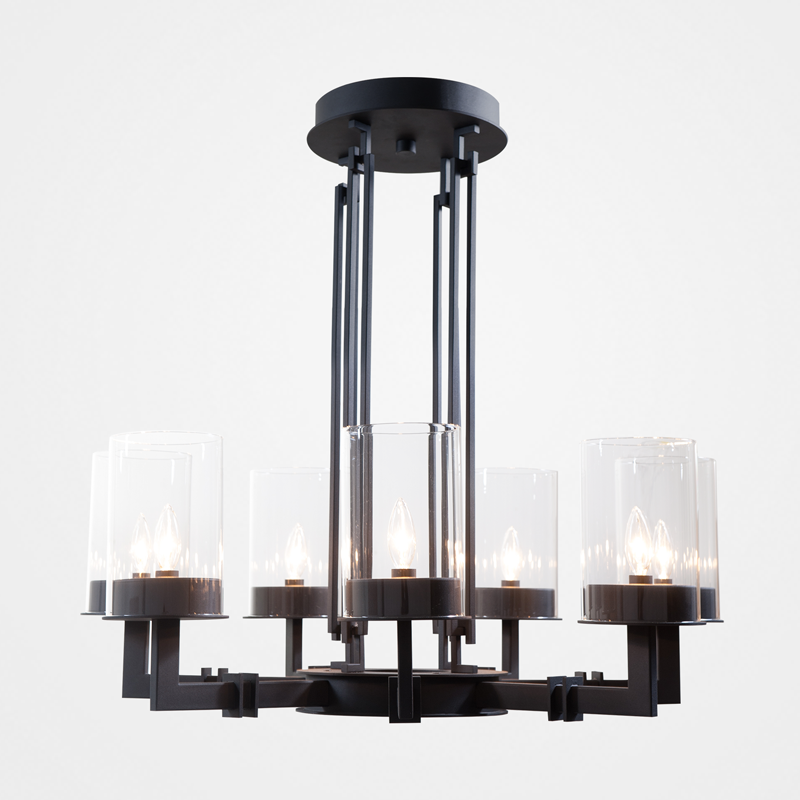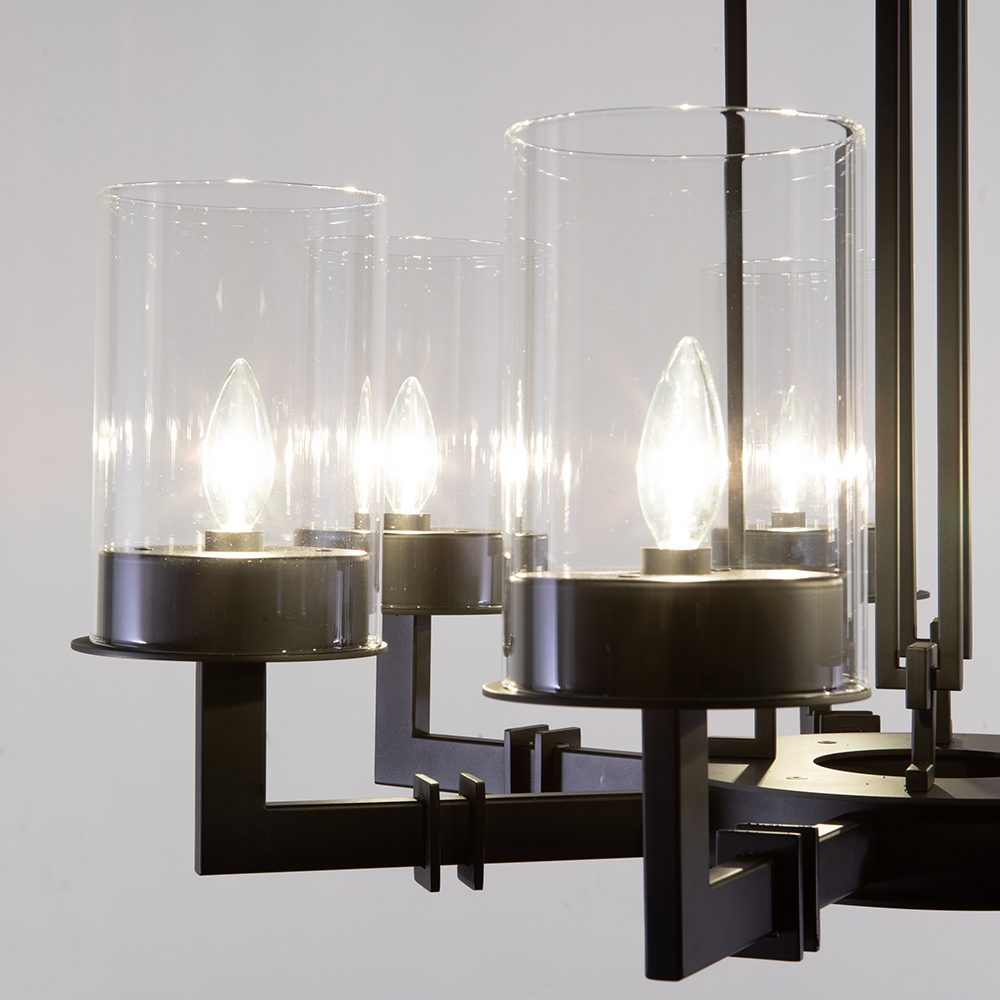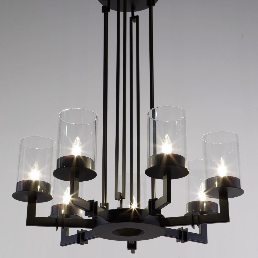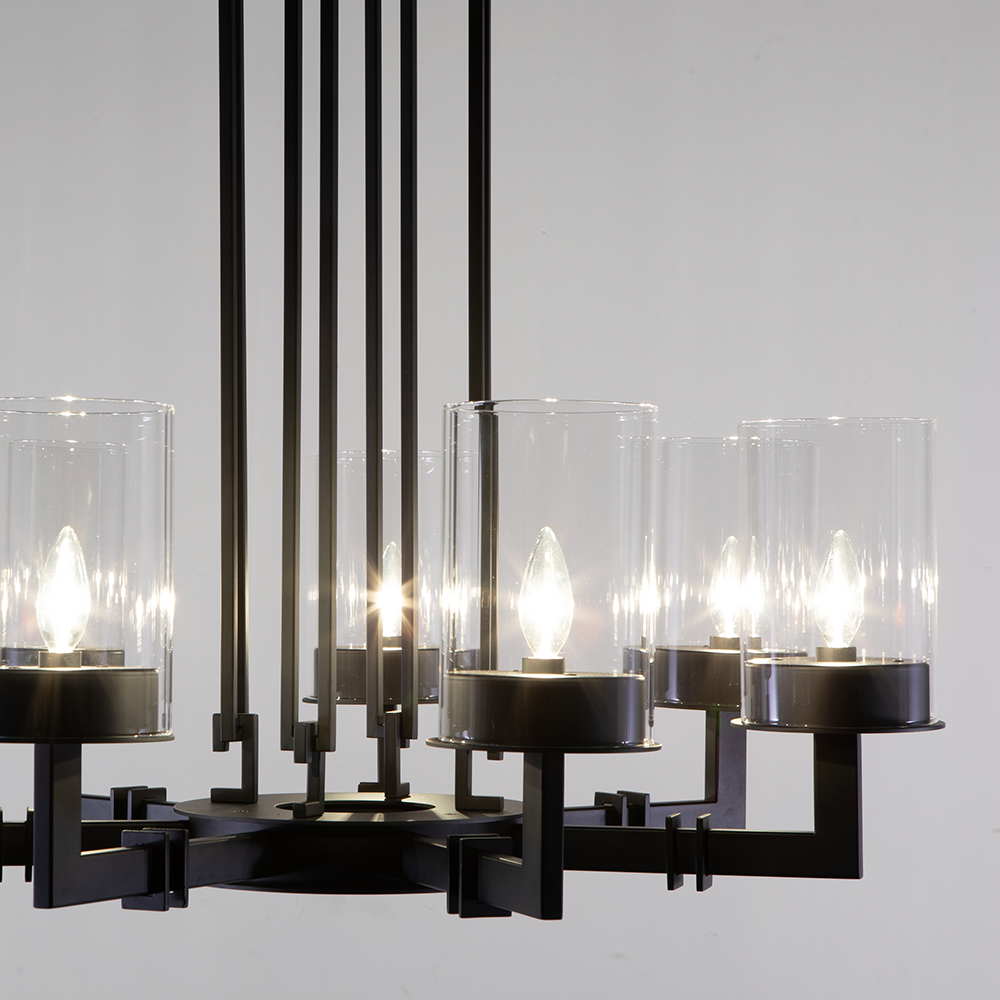 This candle chandelier represents the fusion of classic and contemporary design as the perfect dining room lighting fixture. The Talin round glass chandelier represents the contemporary design interpretation of a candled dining table chandelier. It consists of clean lines adding a modern feel and warmth to any space in a sophisticated way. Clear glass shades add a contemporary while classic look to this candle chandelier, the perfect element in your transitional décor.