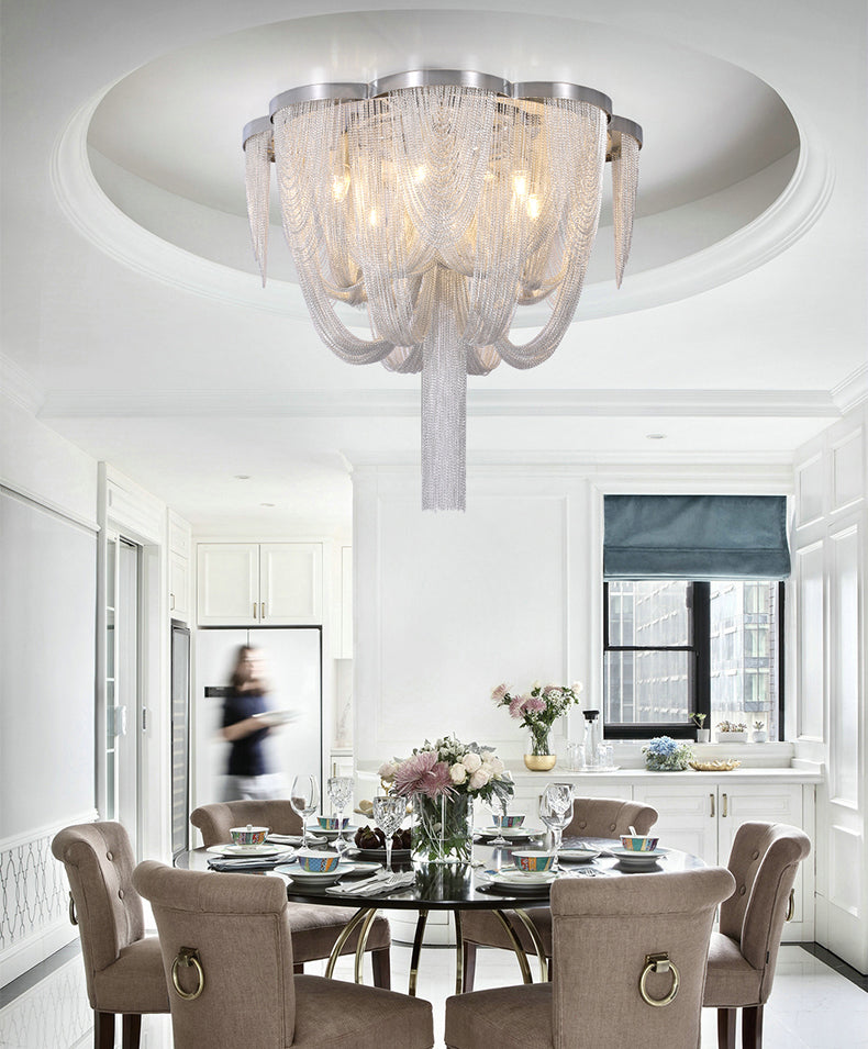 Whether you’re looking for a traditional or modern style, this chain tassel long-tail ceiling light will illuminate your desired space. With its various colors and length options, it’s easy to find one that fits your needs. It’s lightweight & the perfect choice for the living room, kitchen, dining area, bedroom, office, or hallway.