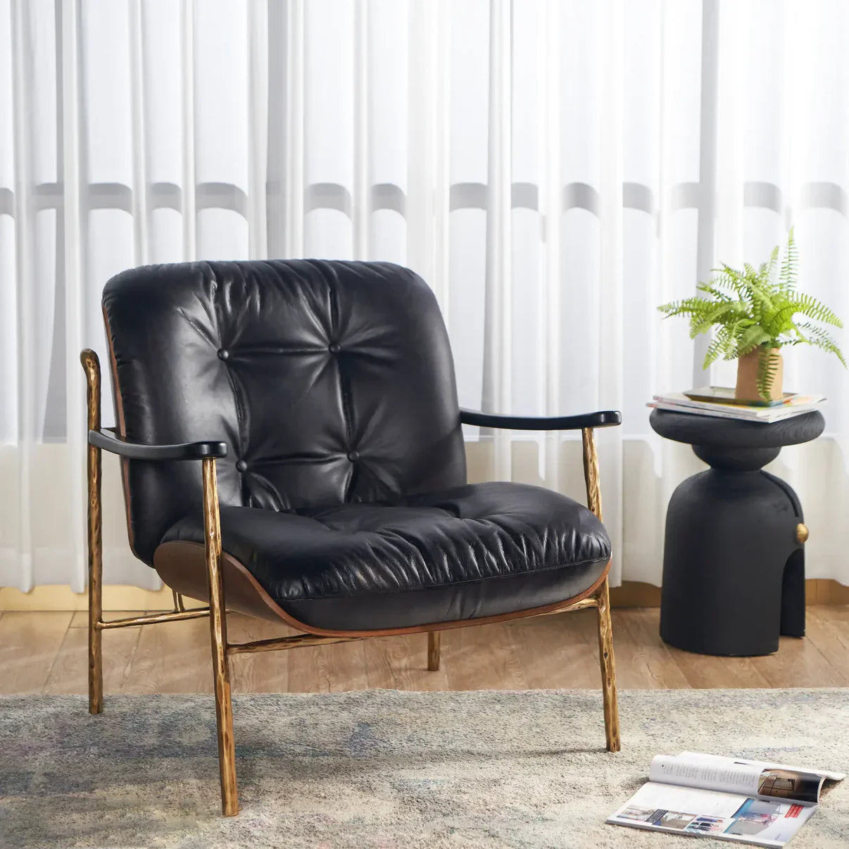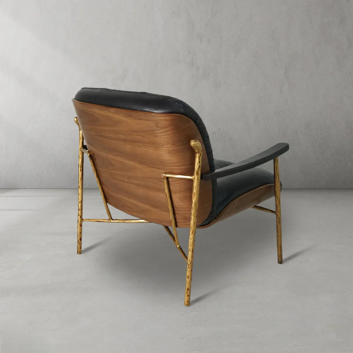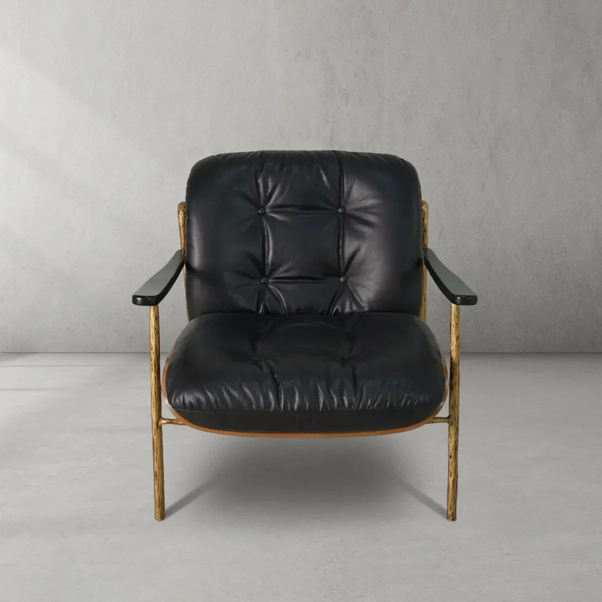Our chair from the rustic sensibility of a hand-forged metal base with tailored upholstery. Employing an ancient fabrication process, artisans hand hammer the metal bars to reveal an alive, imperfect and organic texture, a counterpoint to the frame's slender, tapered silhouette.