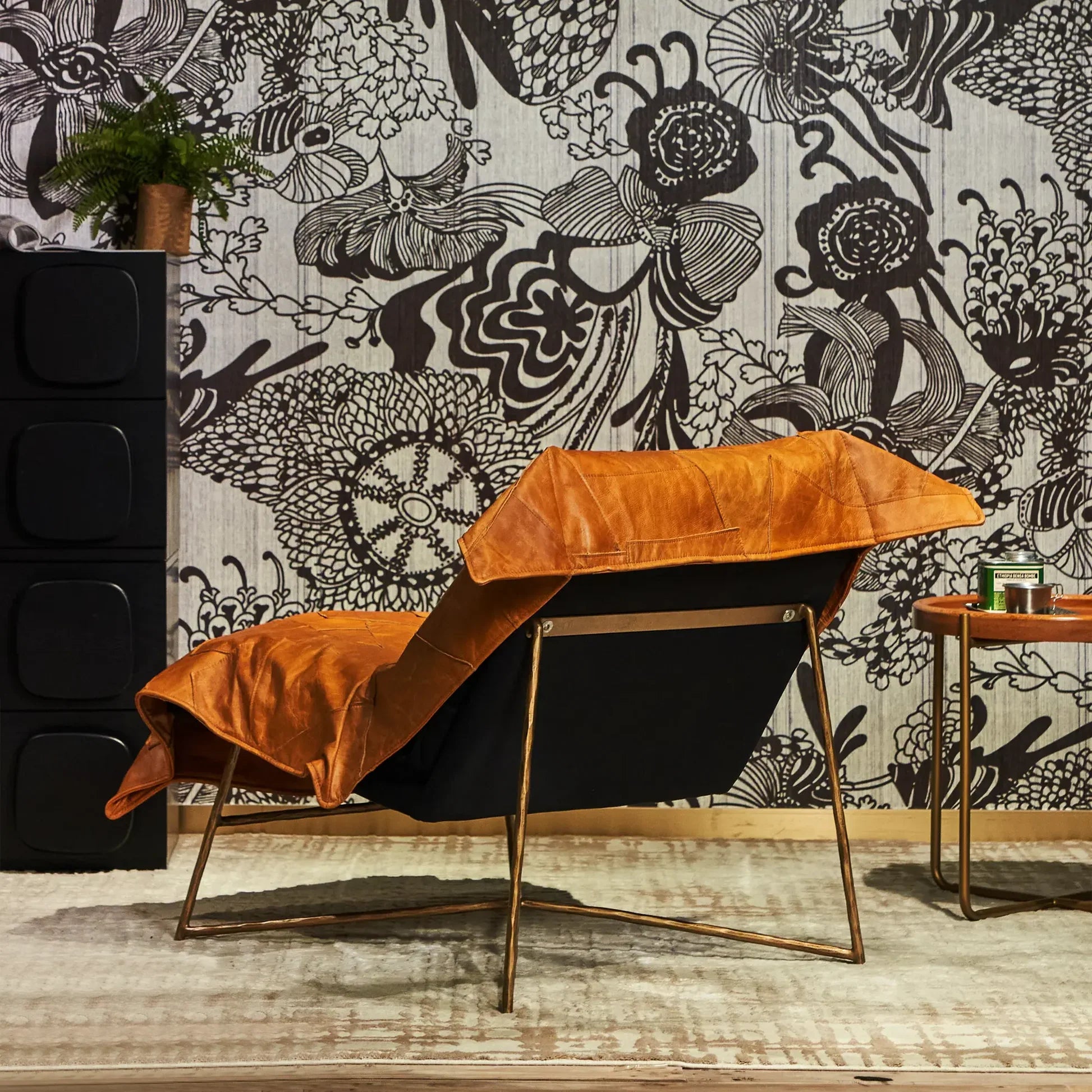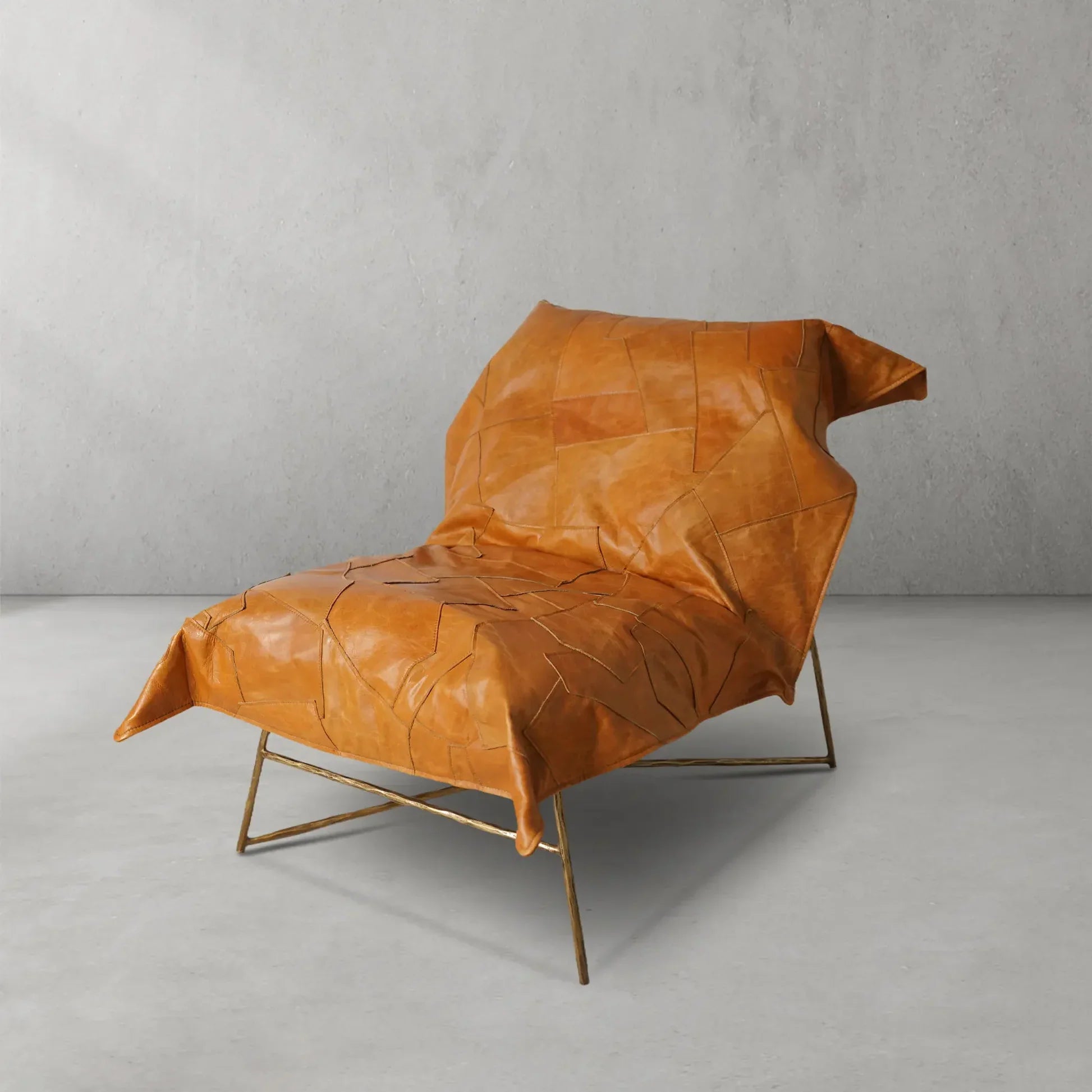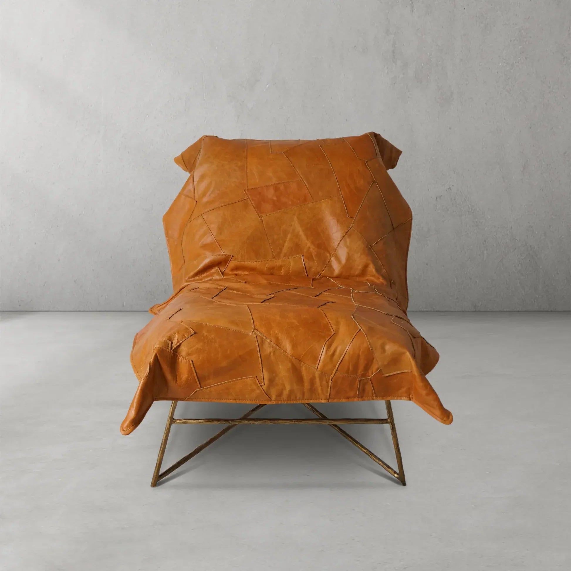 Our chair from the rustic sensibility of a hand-forged metal base with tailored upholstery. Employing an ancient fabrication process, artisans hand hammer the metal bars to reveal an alive, imperfect and organic texture, a counterpoint to the frame's slender, tapered silhouette.