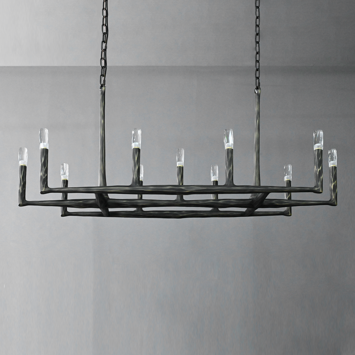 Our collection by the rustic sensibility of hand-forged metal. Employing an ancient fabrication process, artisans hand hammer the metal bars to reveal an alive, imperfect and organic texture, a counterpoint to the frame's slender, tapered silhouette.